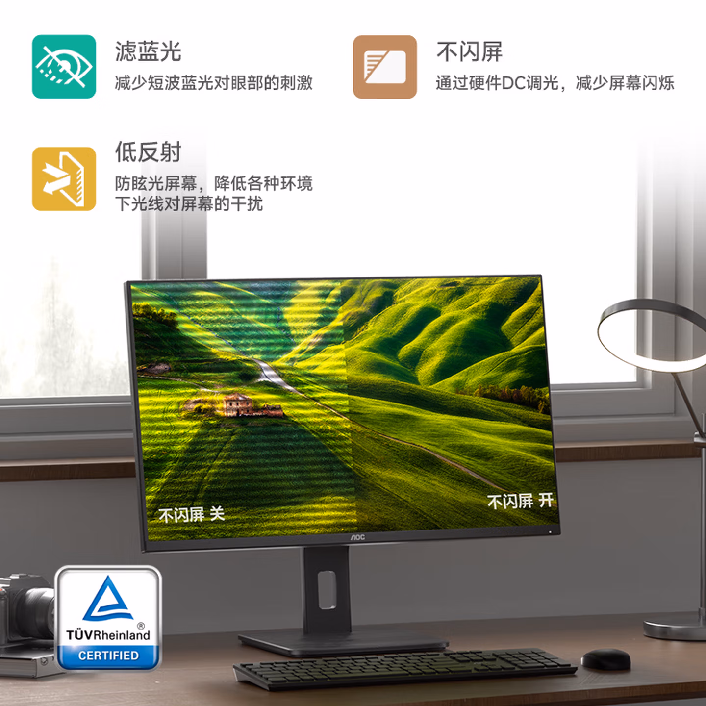 AOC显示器 IPS电脑显示屏幕 旋转升降 办公学习护眼低蓝光 台式拓展笔记本外接扩展屏23.8英寸24P10Q