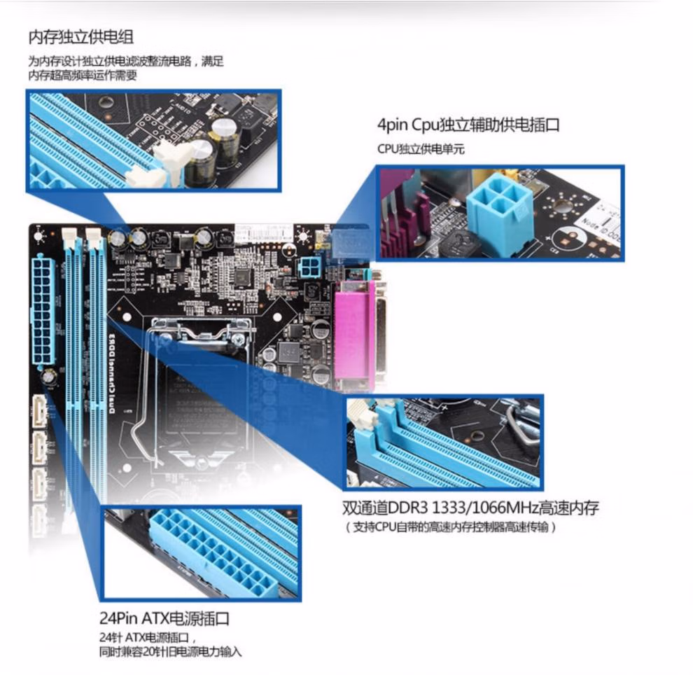 昂达(ONDA)H61P PRO 1155针办公台式电脑主板DDR3兼容i3/i5/i7三代CPU H61P_PRO_3.0版本