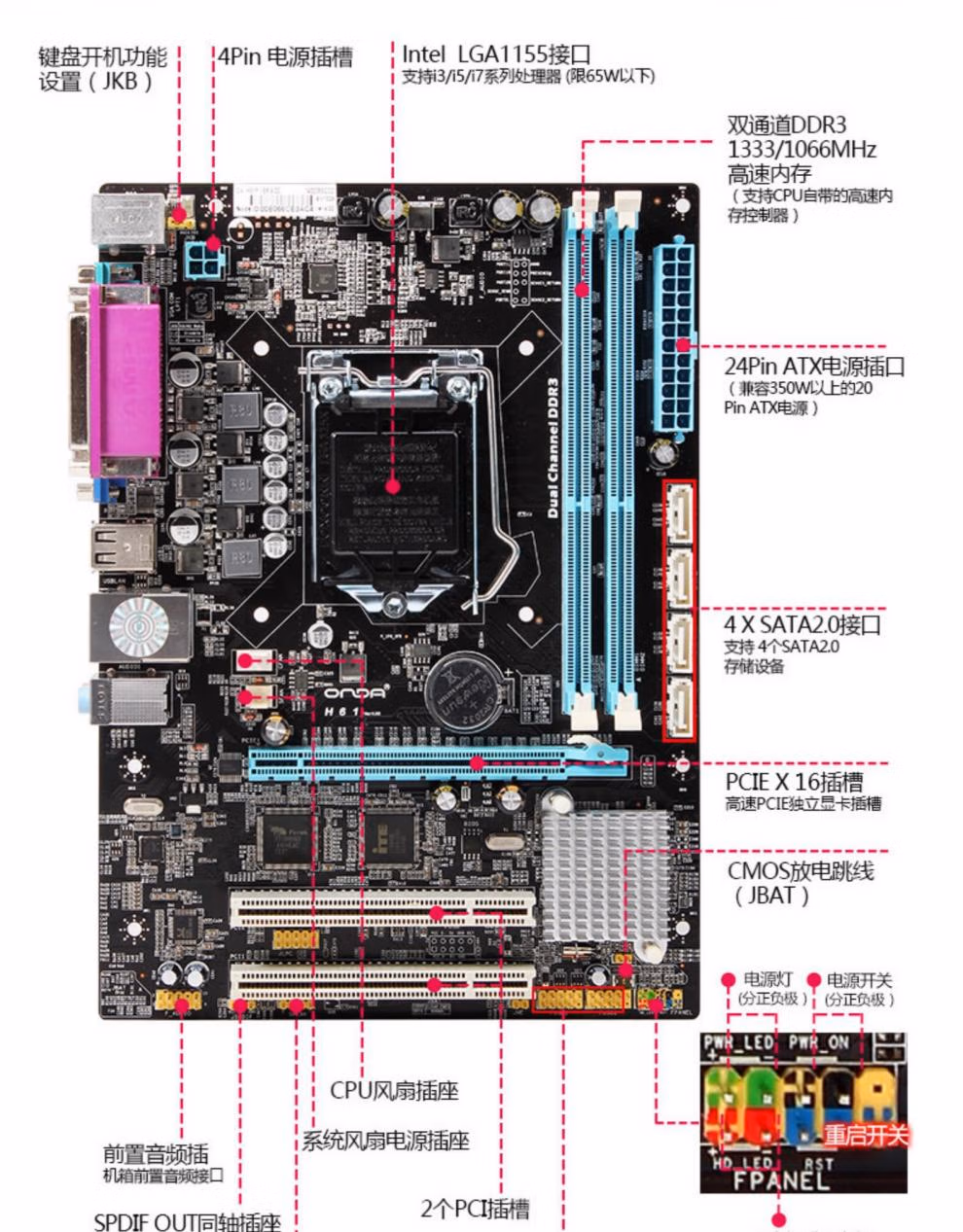 > 昂达(ONDA)H61P PRO 1155针办公台式电脑主板DDR3兼容i3/i5/i7三代CPU H61P_PRO_3.0版本