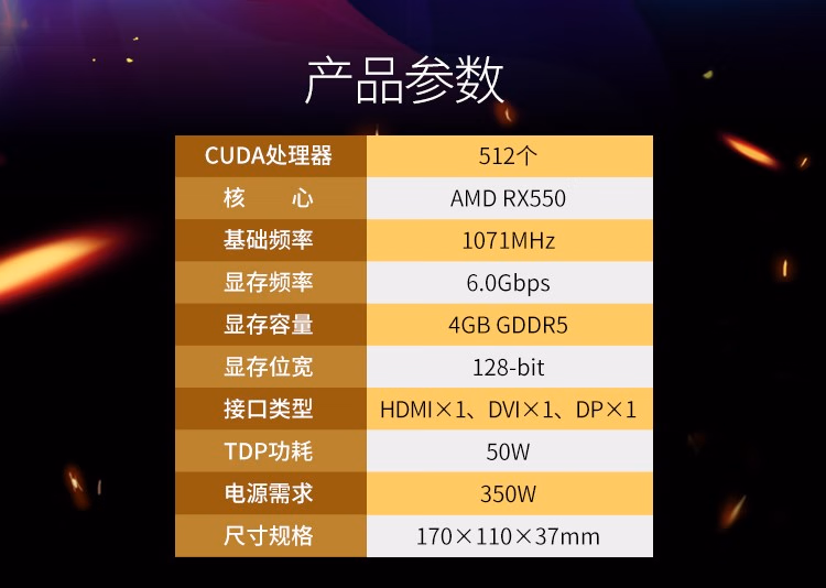 > 昂达原装Onda/RX550神盾4GD5台式电脑独立显卡高清4k游戏LOL吃鸡电竞 RX550典范4GD5(黑色) 4GB