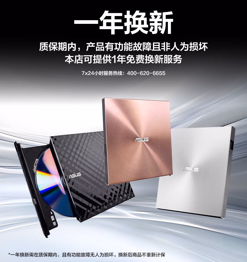 > 华硕(ASUS)8倍速 外置DVD刻录机 移动光驱 支持USB/Type-C接口/兼容M SDRW-08U9M-U 外置DVD刻录机移动光驱【黑色】