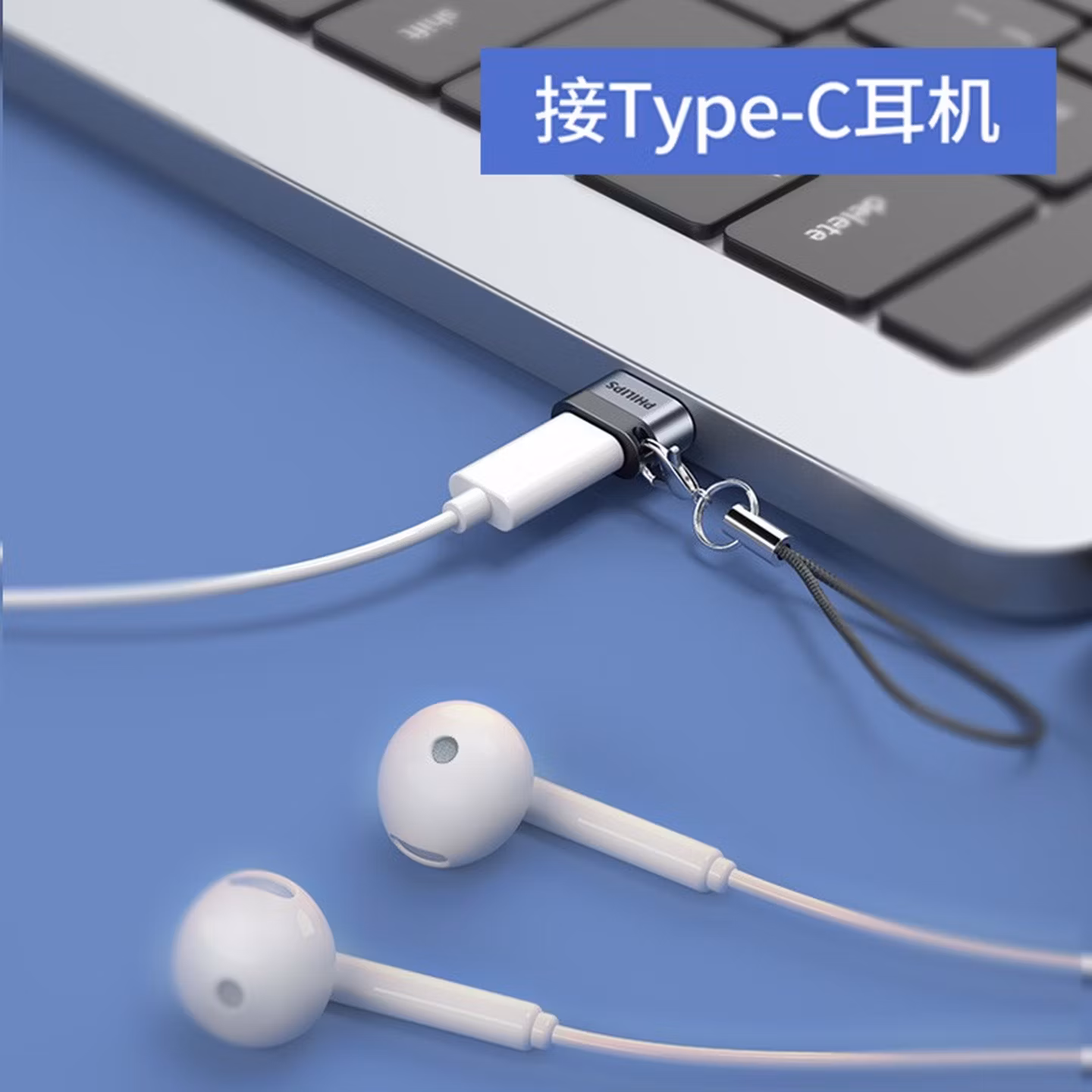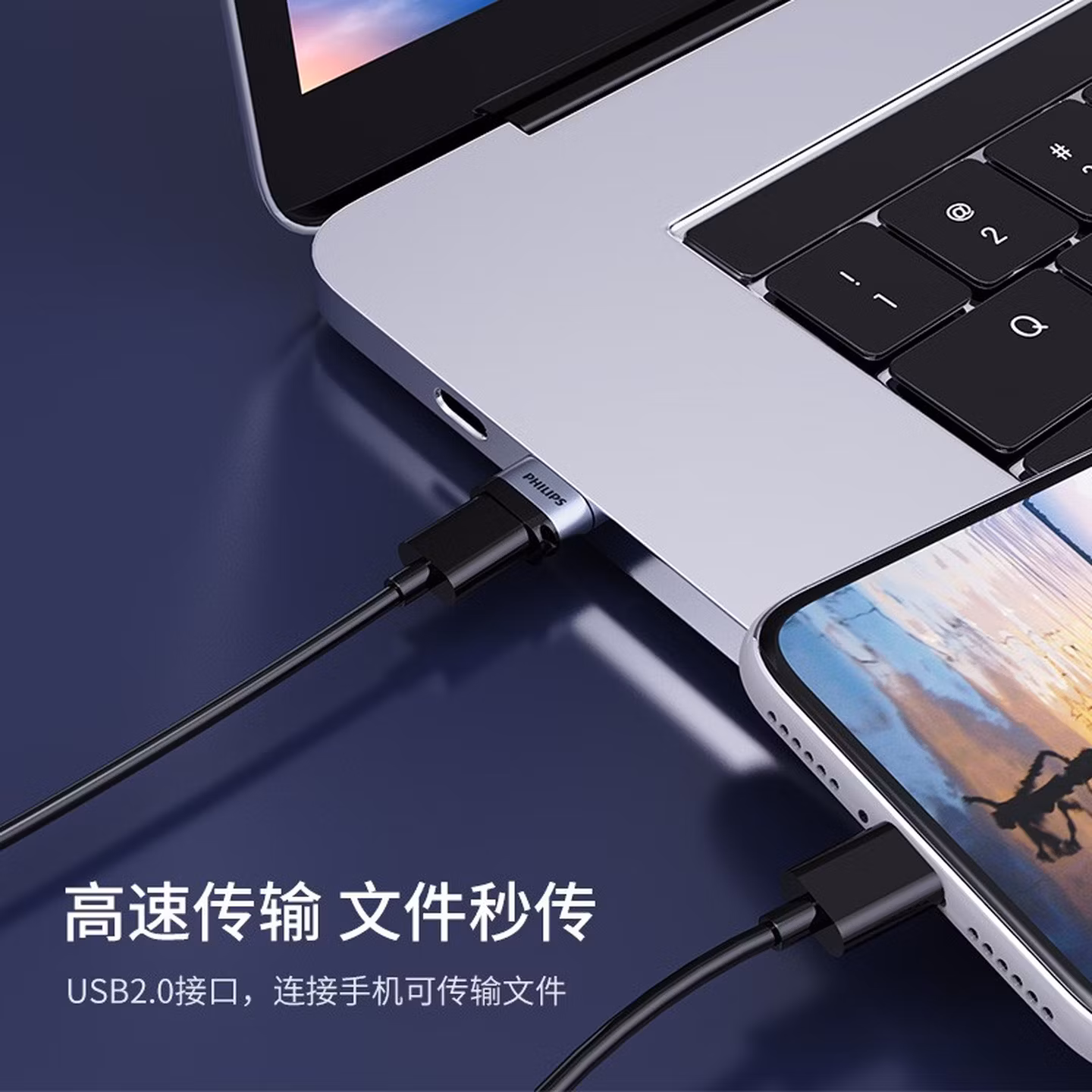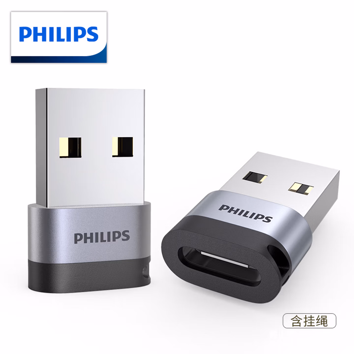 > 飞利浦(PHILIPS)USB转Type-C转接头电脑USB公转USB-C母接口充电数据连接线转换器适用华为耳机笔记本小米手机