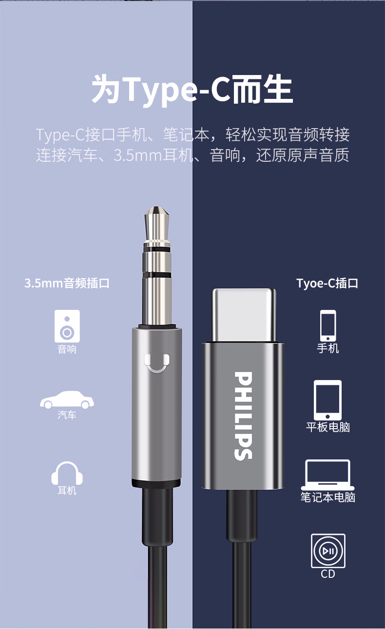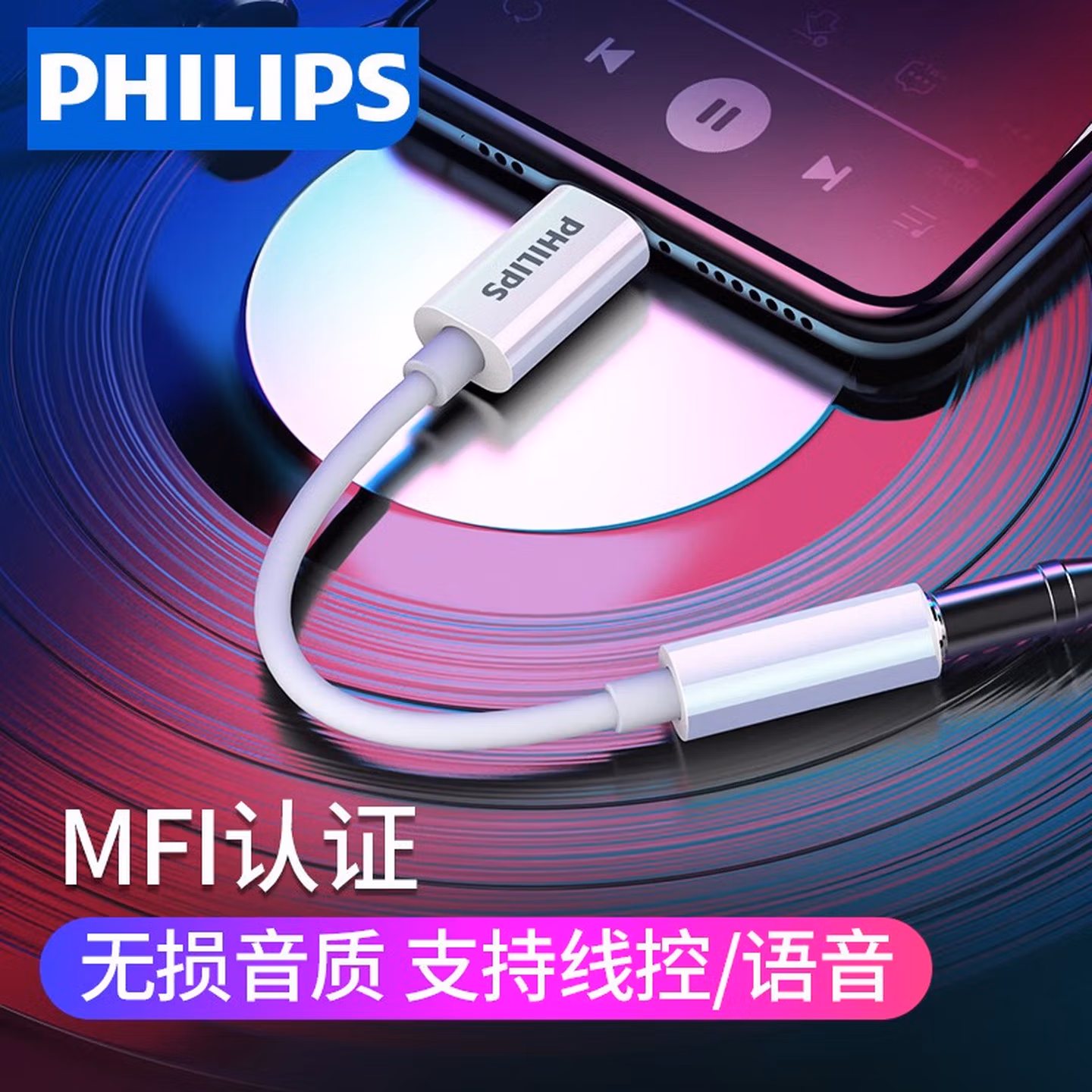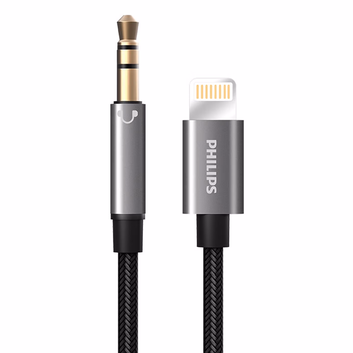 > 飞利浦AUX音频线TYPE-C转3.5mm音频转接头USB-C耳机转换器苹果线MFI认证20W快充线 Lightning转2.5音频1.2米