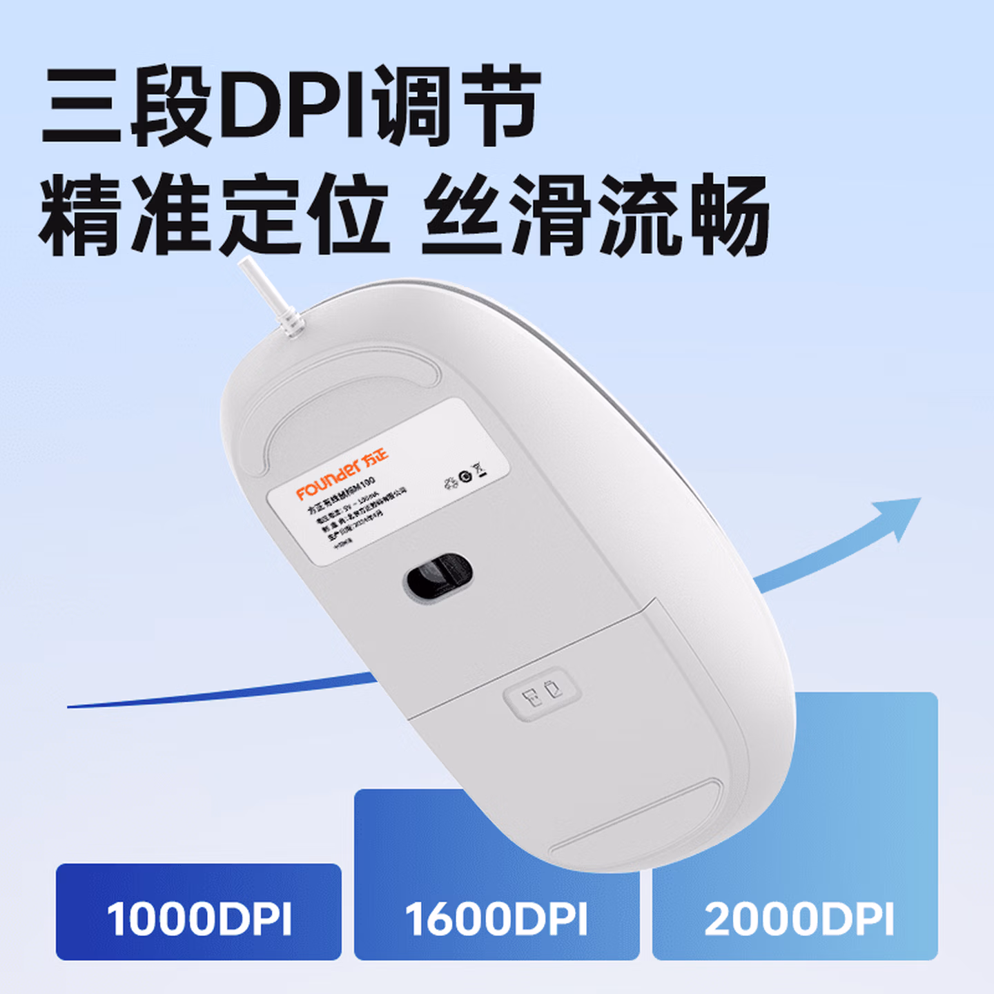 M100 有线款 1.8 米长线_三档 DPI 白色 - 人体工