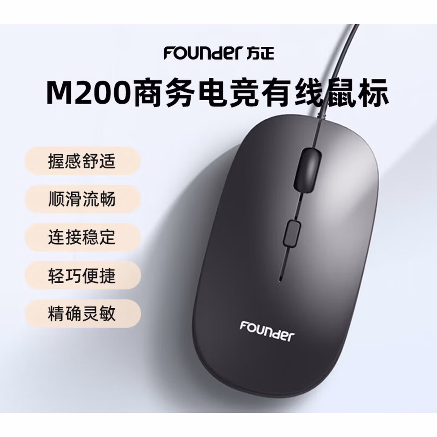 > 方正(Founder)有线鼠标 M100 鼠标有线 便携办公 USB即插即用 台式机 笔记本 电脑鼠标【黑色】