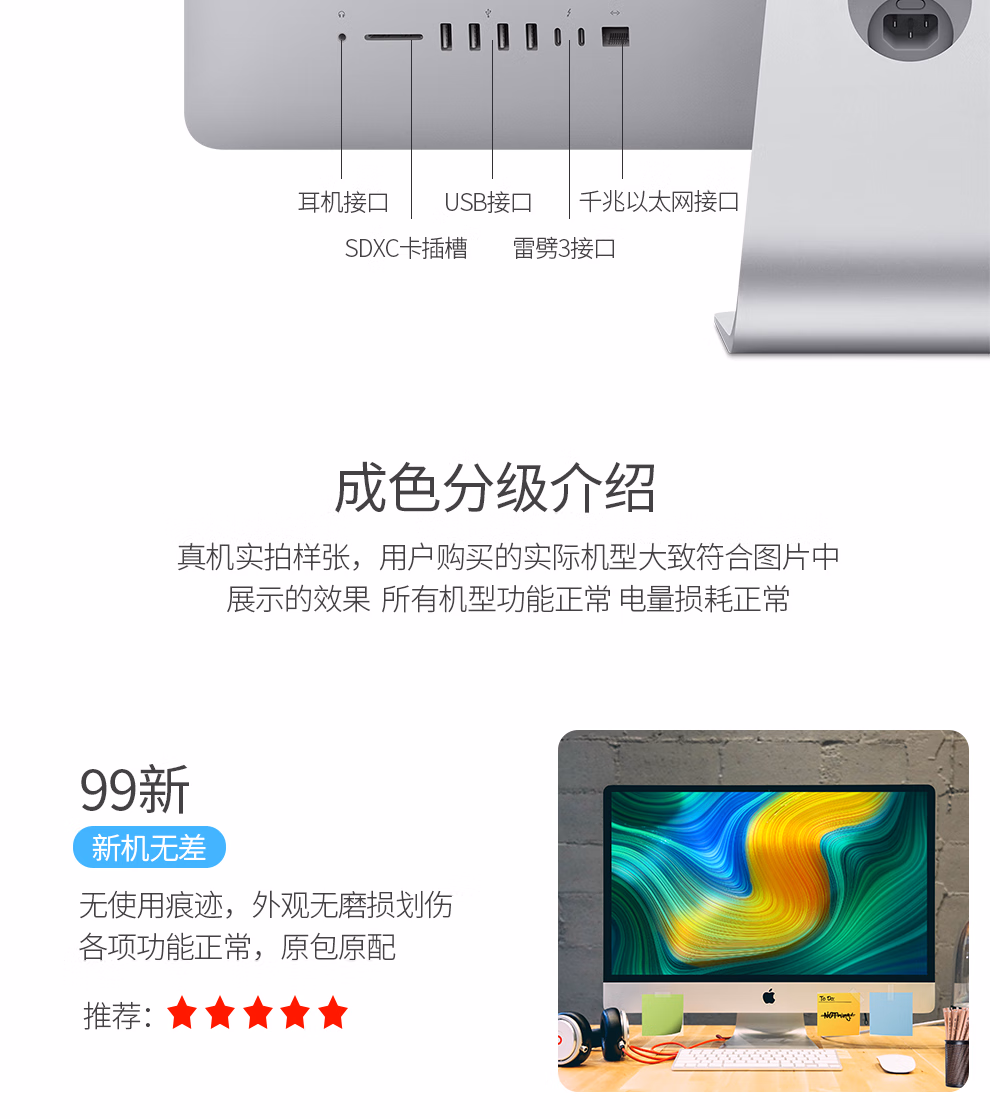> 苹果 Apple imac 二手苹果一体机电脑台式机 21.5/27英寸 4K/5K 设计剪辑电脑 京品甄选 24寸【官翻全新】M3/8+8核/8G/256G