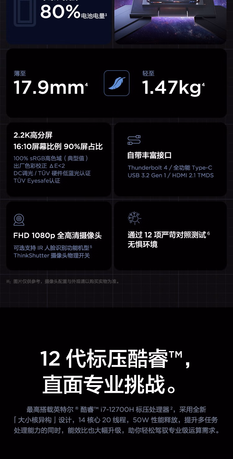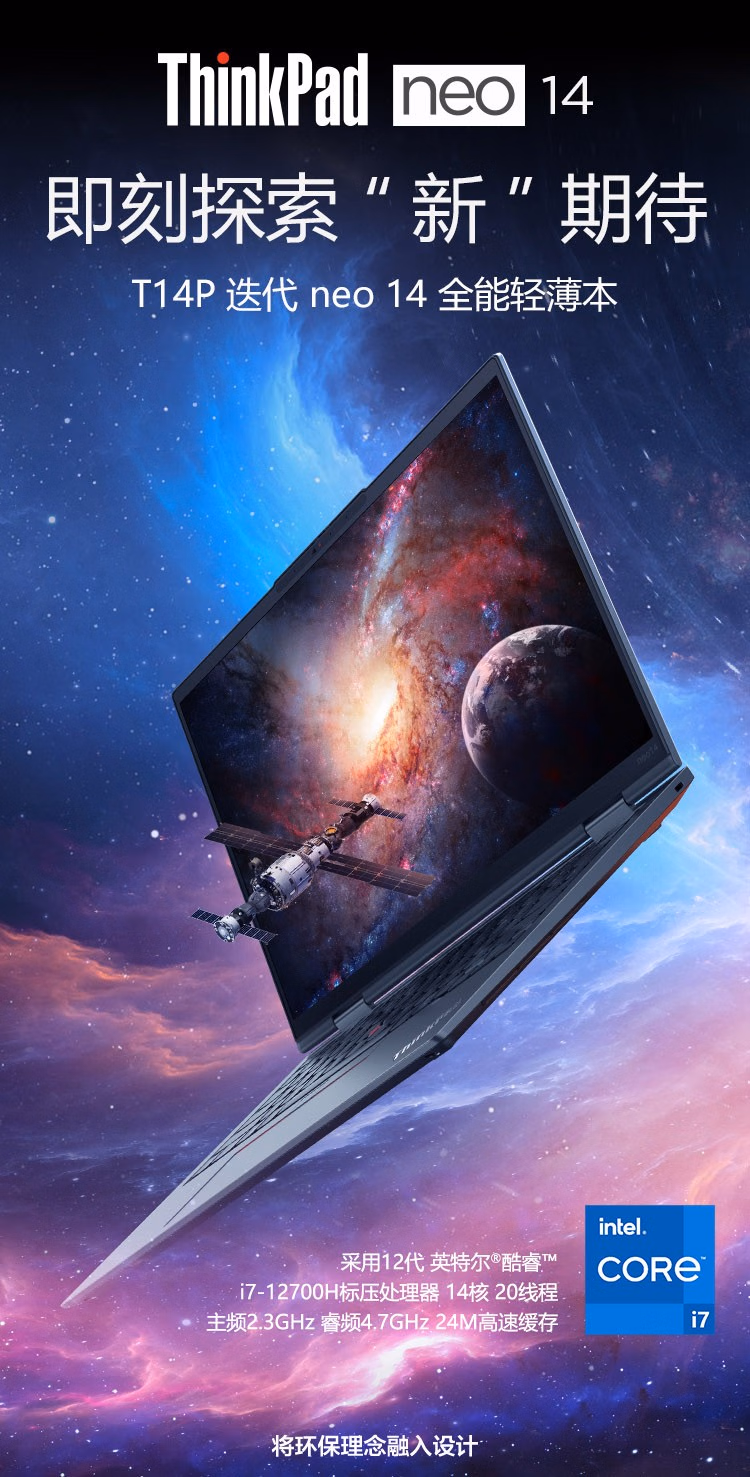ThinkPad联想T14p迭代款 Neo14 14英寸高性能轻薄本 商务办公编程工程师设计绘图全能本笔记本电脑 i7-12700H RTX2050独显 2.2K屏 16G 512G 高色域 人脸识别 标配