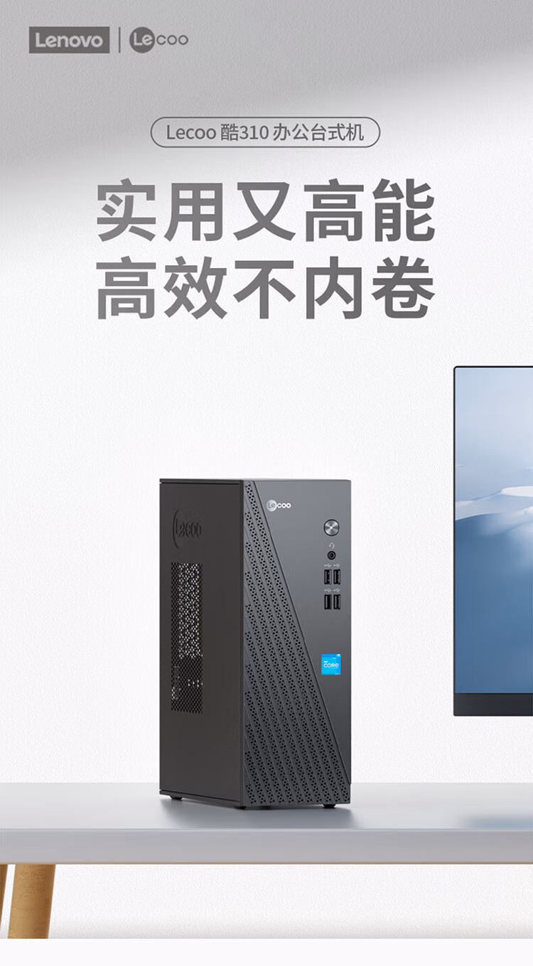 联想来酷台式机电脑 酷睿i3-12100商用办公企业采购台式电脑整机全套迷你小机箱 主机+23.8英寸显示器 i3-12100 8G 512G固态 标配