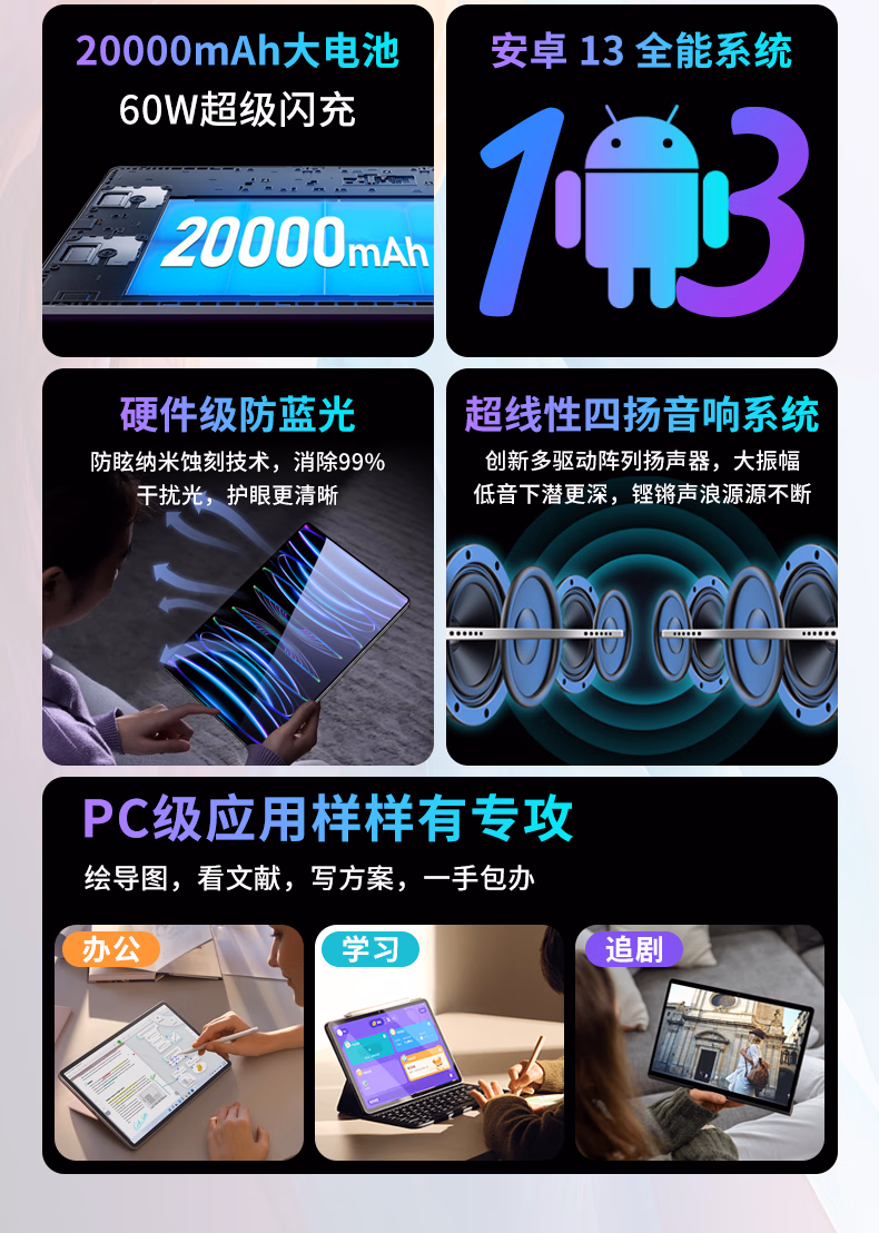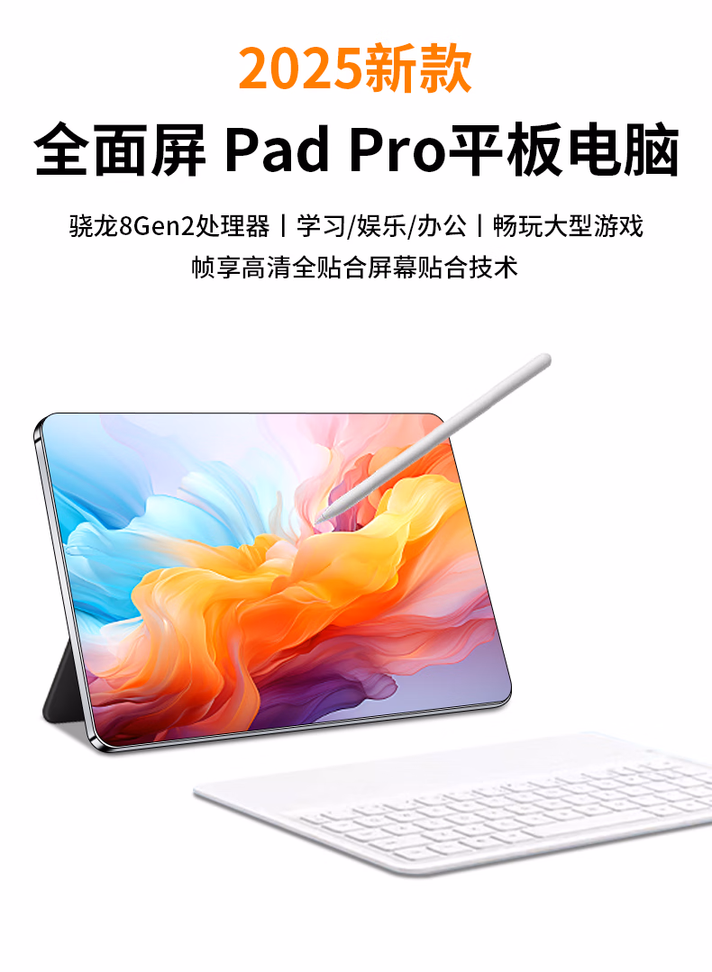 > GUNCAKU新款全面屏16+1024G超薄平板电脑4K超清全贴合屏全网通5Gwifi游戏办公学习二合一平板Pad 【全新】强劲十核X95C/白色款 512G版+带蓝牙键盘+蓝牙耳机