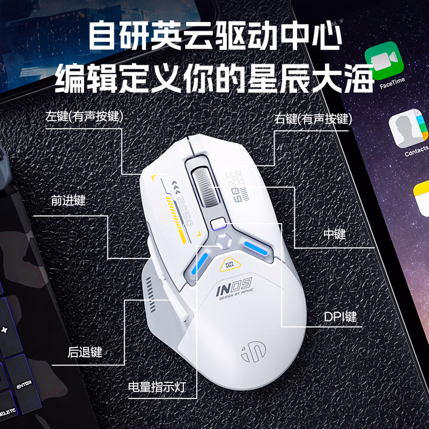 英菲克(INPHIC)IN9无线蓝牙有线游戏鼠标三模电竞人体工学宏rgb吃鸡lol/csgo台式笔记本通用无限