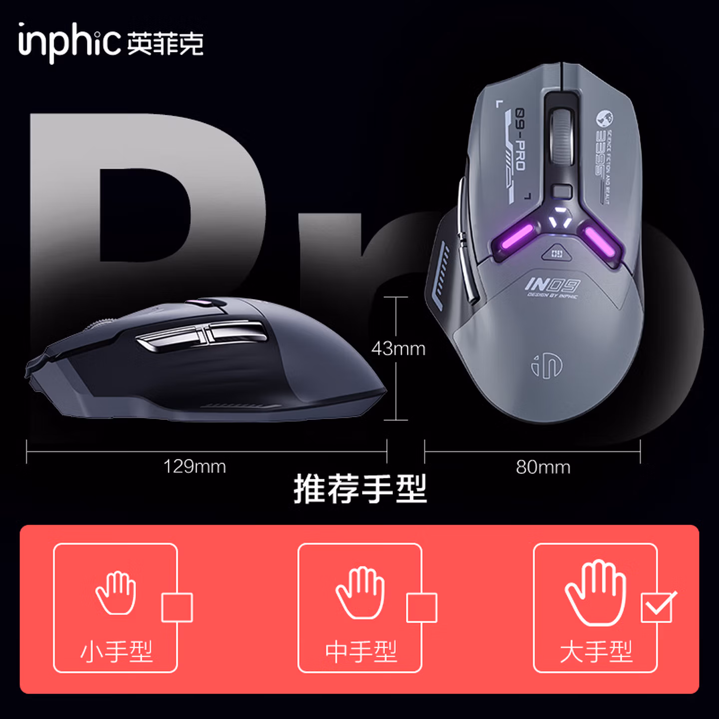 > 英菲克(INPHIC)IN9无线蓝牙有线游戏鼠标三模电竞人体工学宏rgb吃鸡lol/csgo台式笔记本通用无限