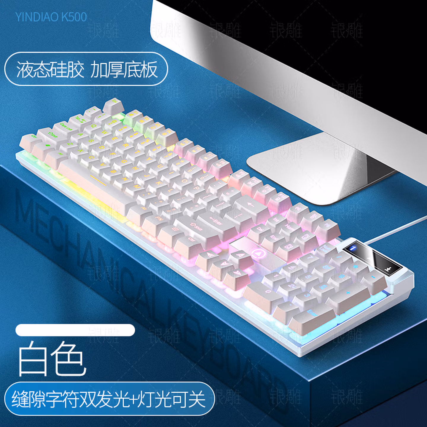 > 银雕(YINDIAO) KM500有线发光键盘鼠标 机械手感游戏电竞笔记本台式电脑外设 薄膜键鼠套装