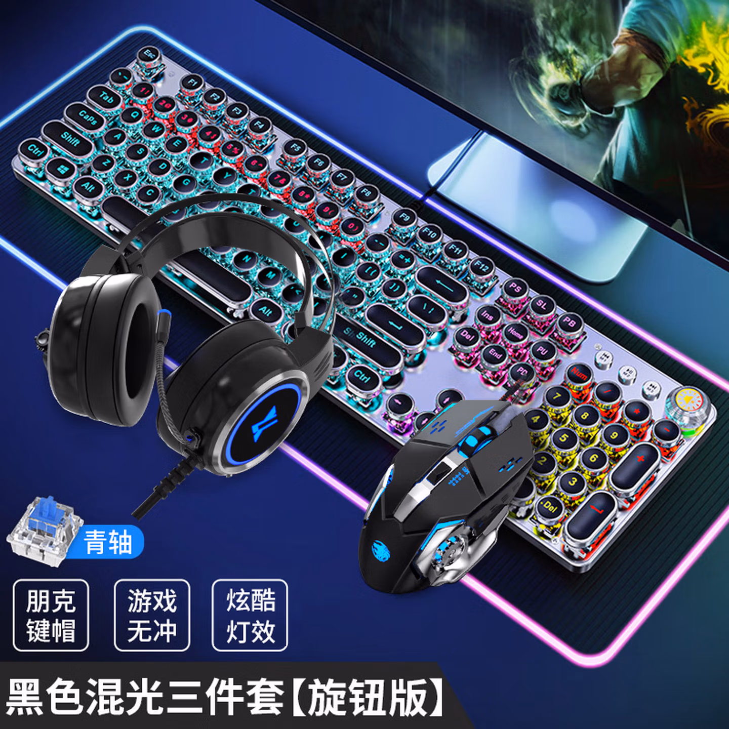 黑色混光 - 青轴朋克版 + 机械手鼠标