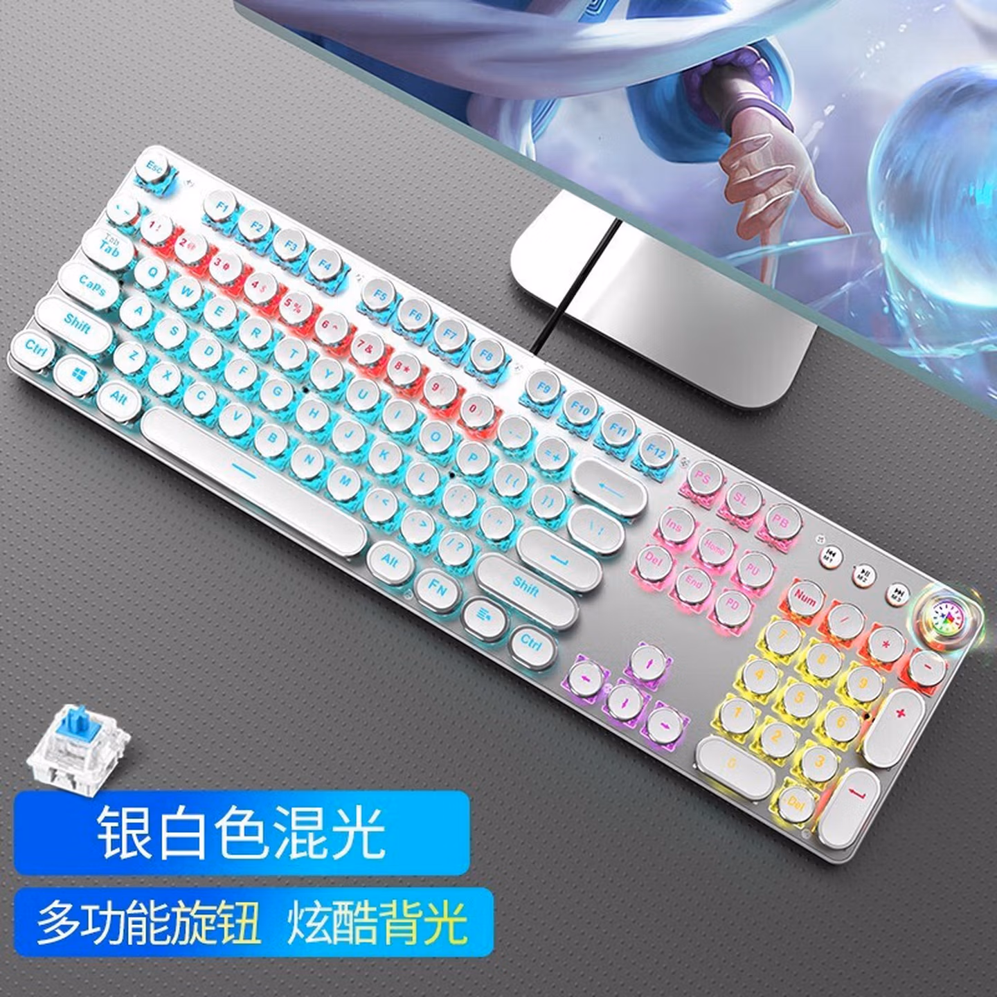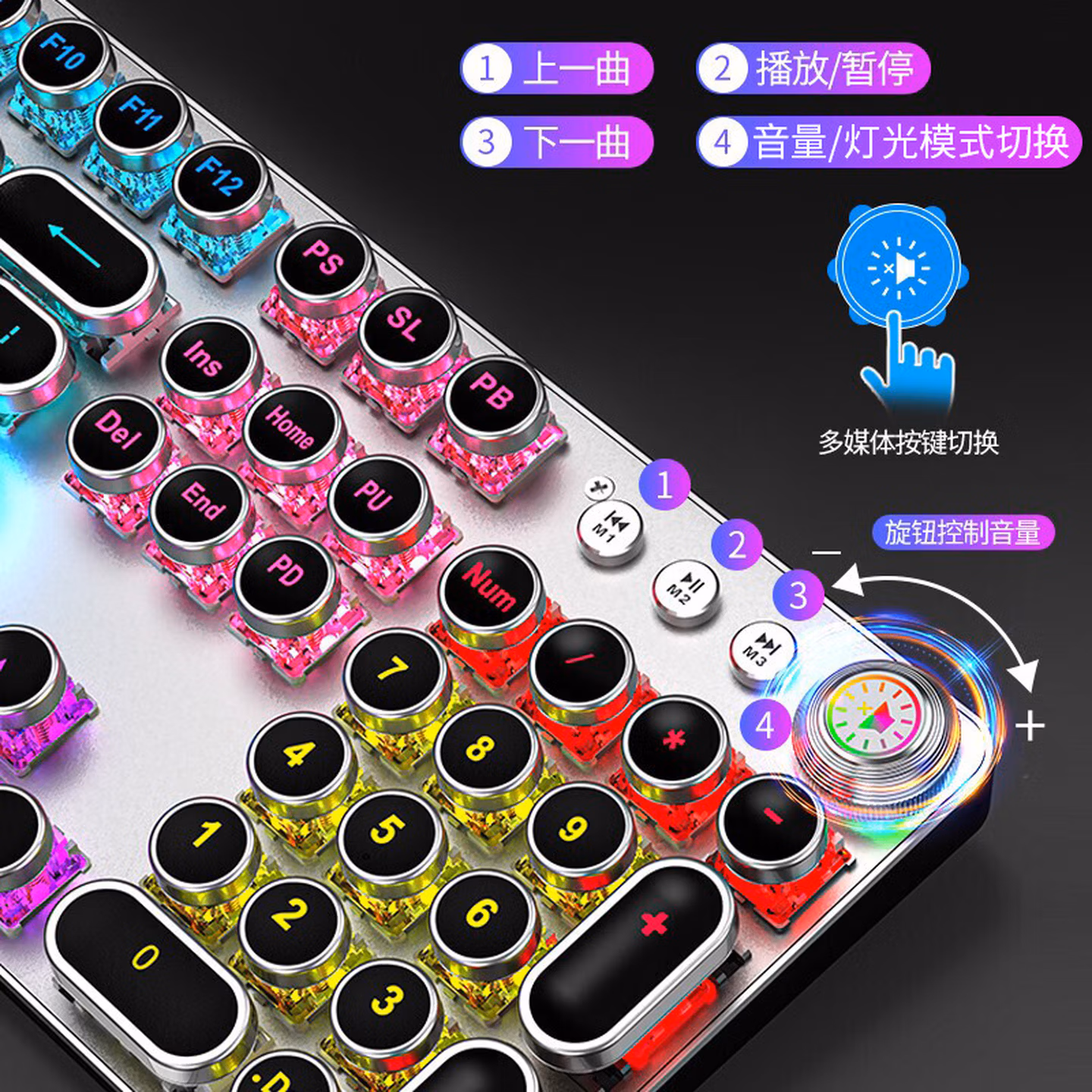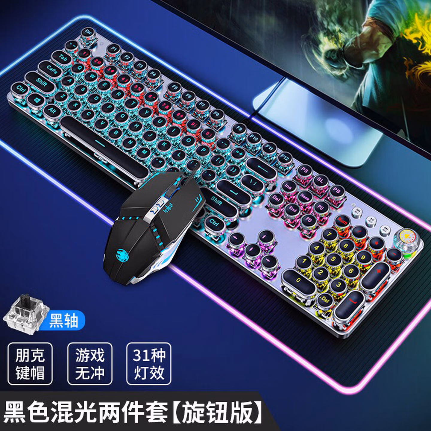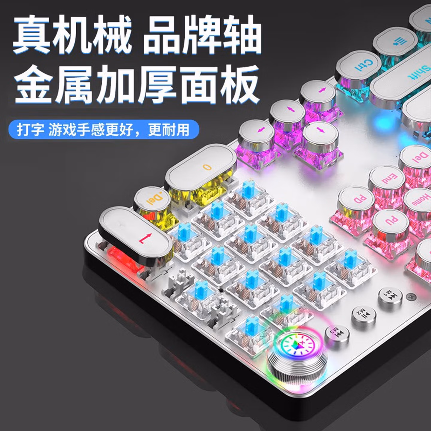 > 前行者(EWEADN)TK100朋克机械键盘电竞游戏有线台式电脑笔记本外接办公打字复古外设吃鸡