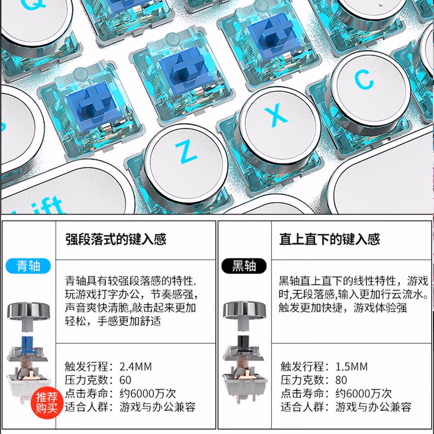 银白色 - 白光 - 青轴 + 机械手鼠标