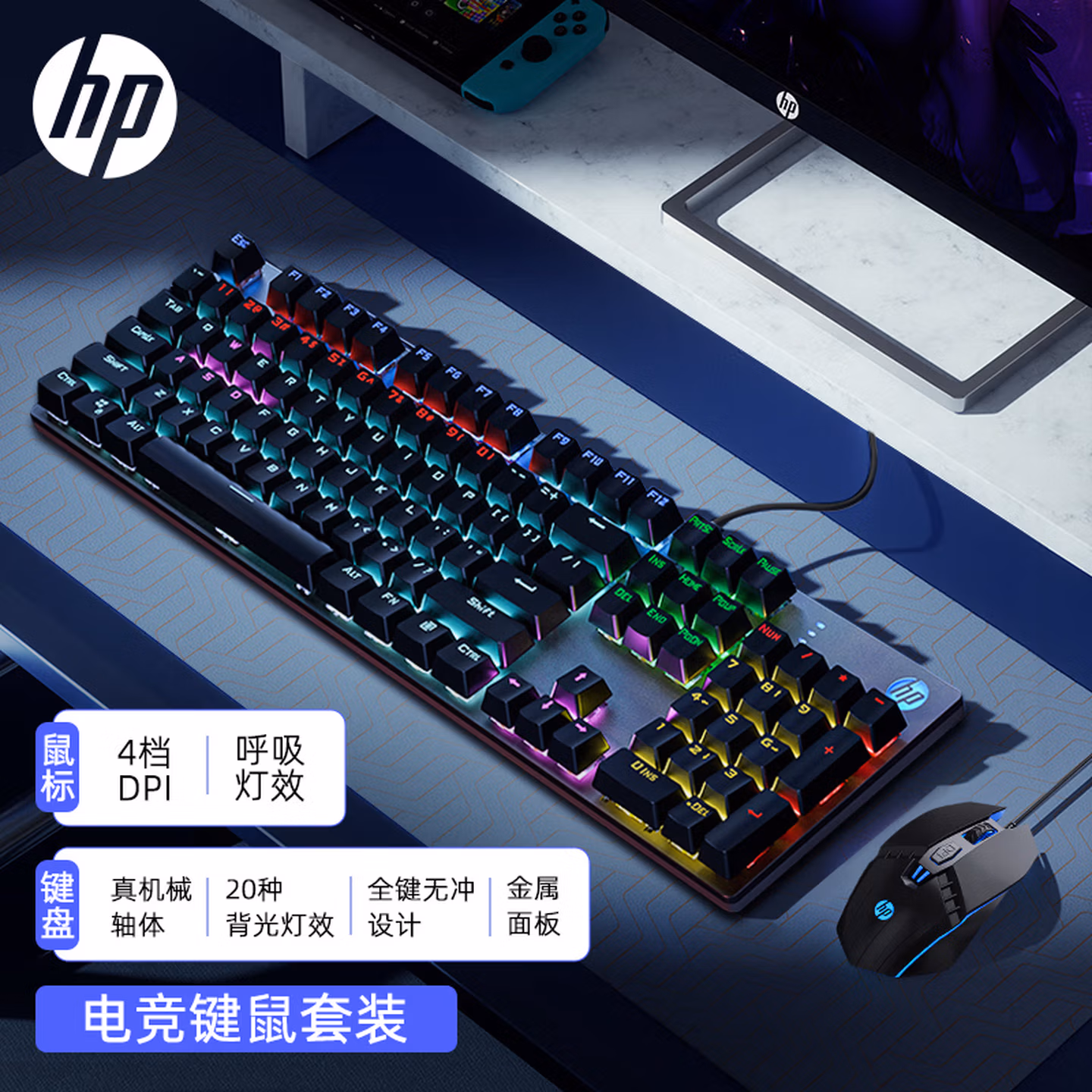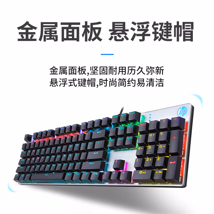 > 惠普(HP)GK400F机械键盘 办公电竞游戏专用有线 台式机笔记本电脑键盘鼠标套装 【枪色混光】