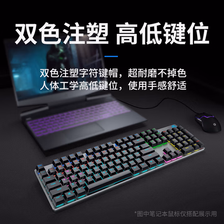 惠普(HP)GK400F机械键盘 办公电竞游戏专用有线 台式机笔记本电脑键盘鼠标套装 【枪色混光】
