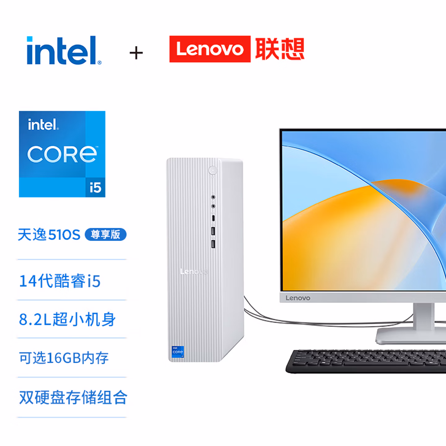 > 联想(Lenovo)天逸510S台式机电脑酷睿i5-14400商用家用办公企业采购学习主机整机全套 主机+27.0英寸来酷显示器