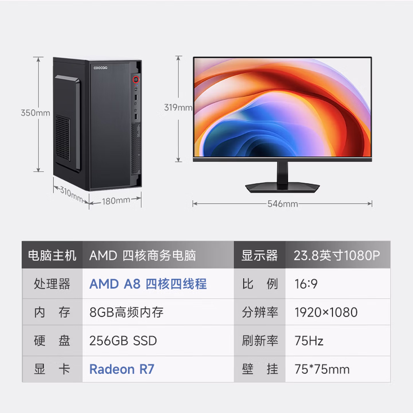 酷开(coocaa) 创维电脑 商用办公台式电脑主机创世C9创维电脑 大内存商用办公台式机