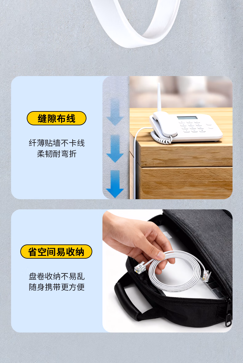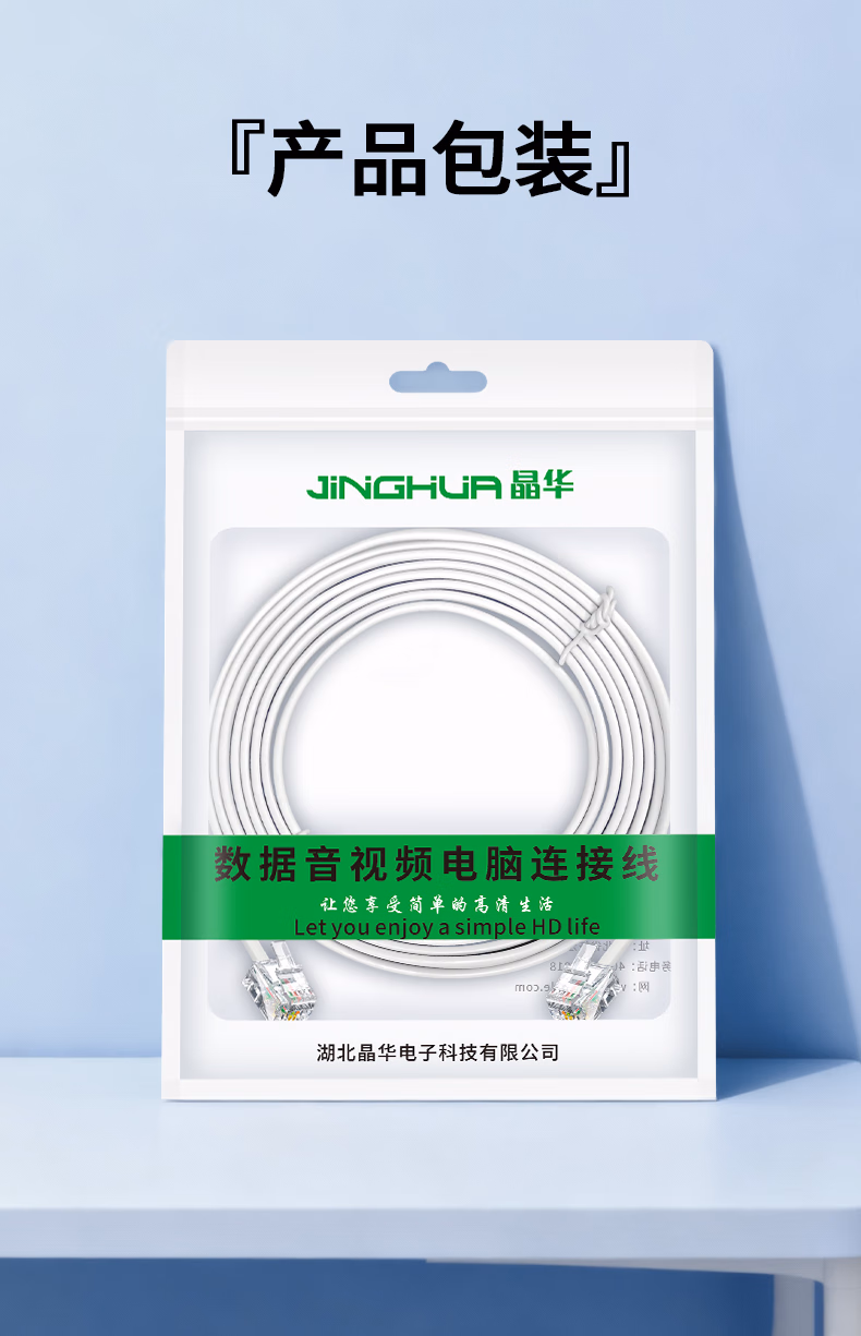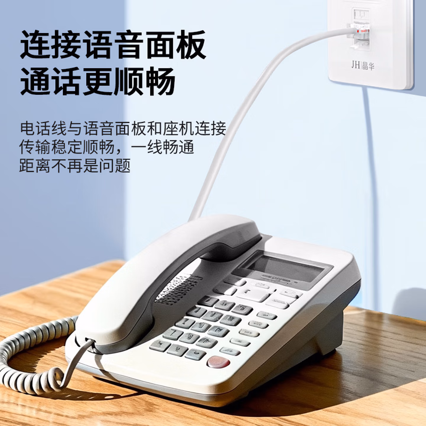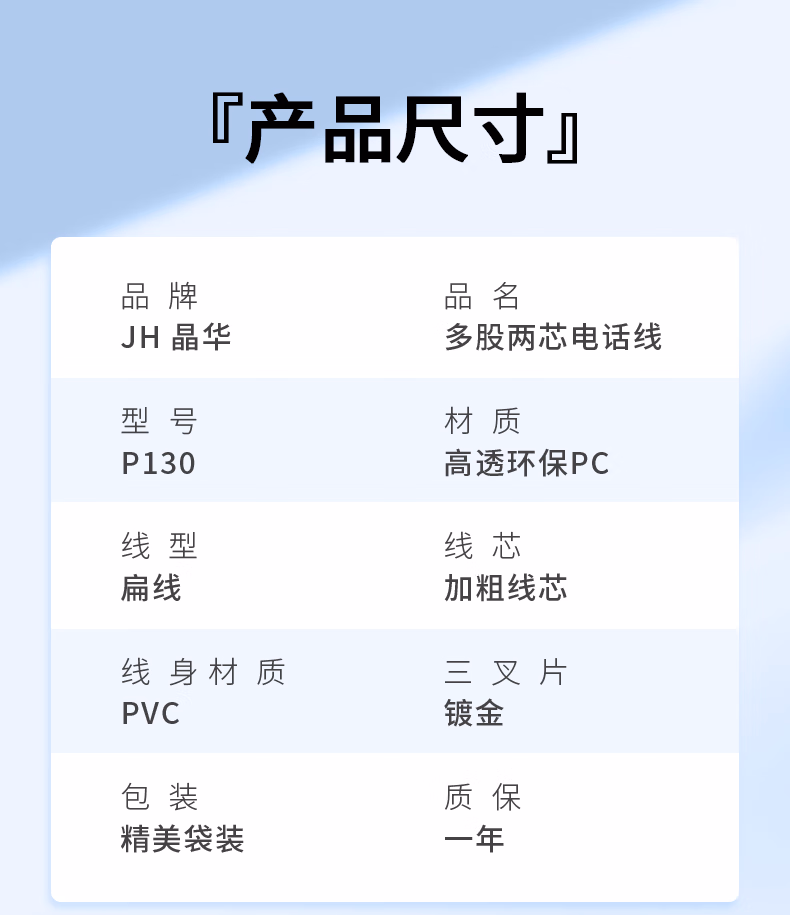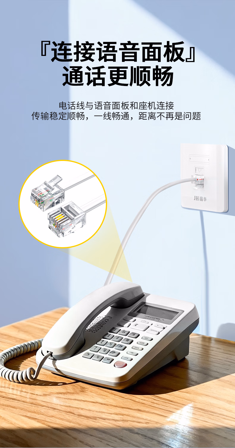 > 晶华 电话线2芯纯铜多股座机跳线 工程家装布线连接传线真机延长线 带电话水晶头成品 白色100米 P130V