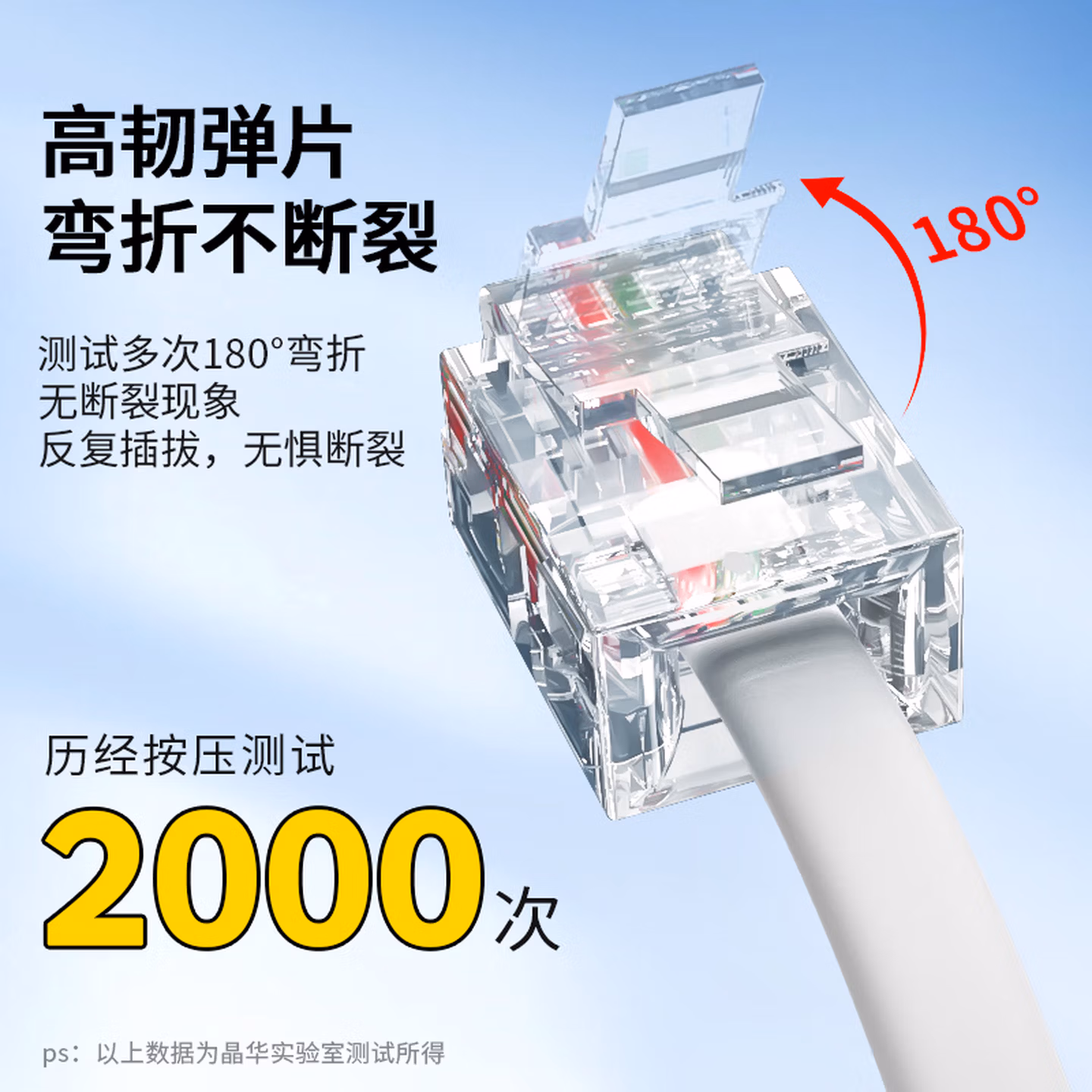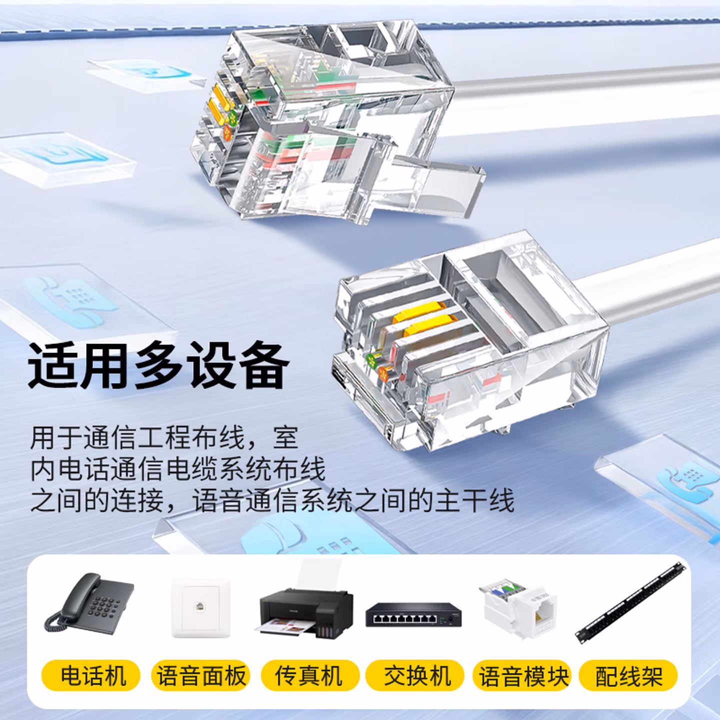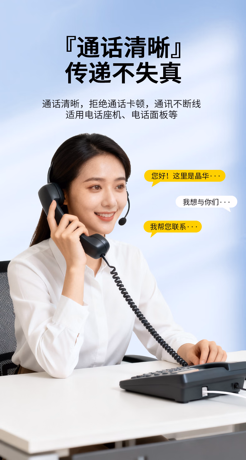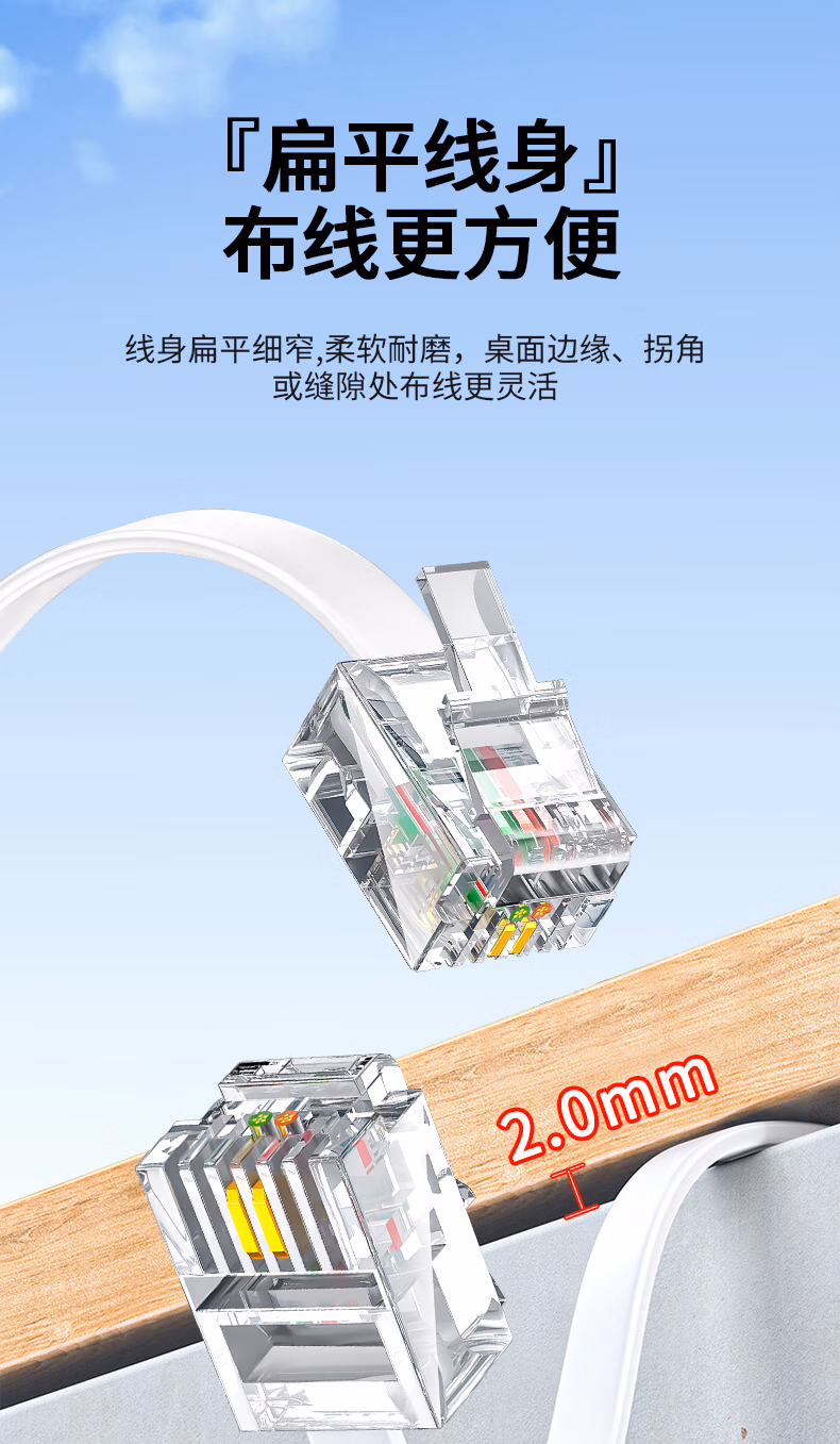 > 晶华 电话线2芯纯铜多股座机跳线 工程家装布线连接传线真机延长线 带电话水晶头成品 白色100米 P130V