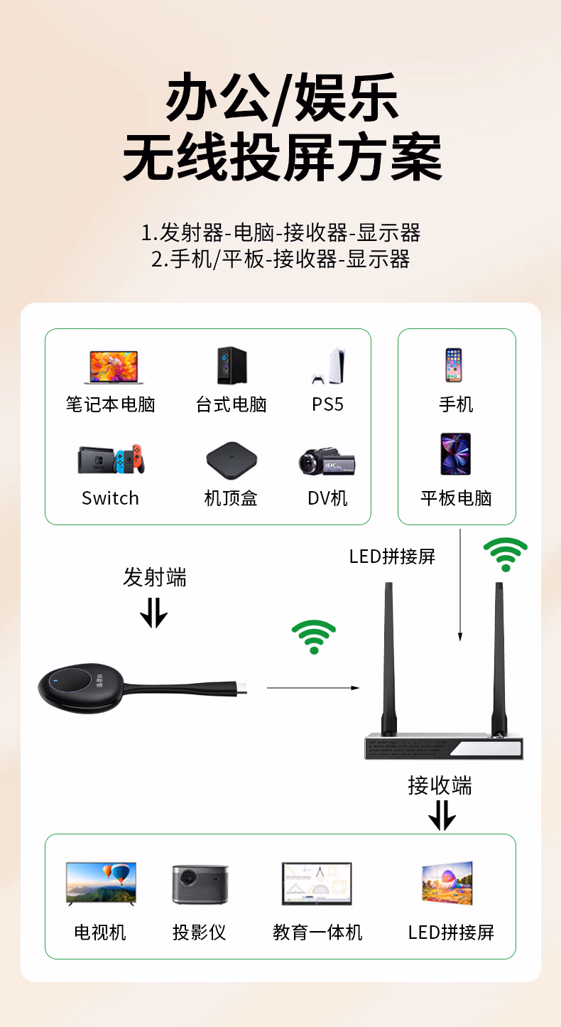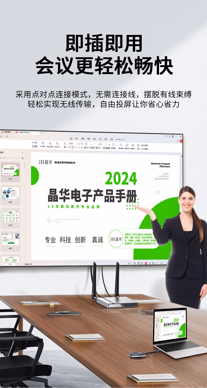 > 晶华 企业级无线投屏器 手机电脑连电视5g双频VGA+HDMI同屏器1080 z515企业级投屏器5g版