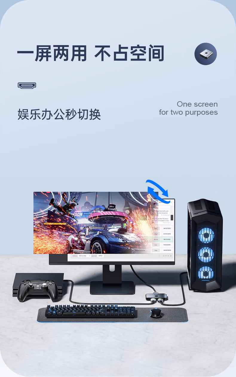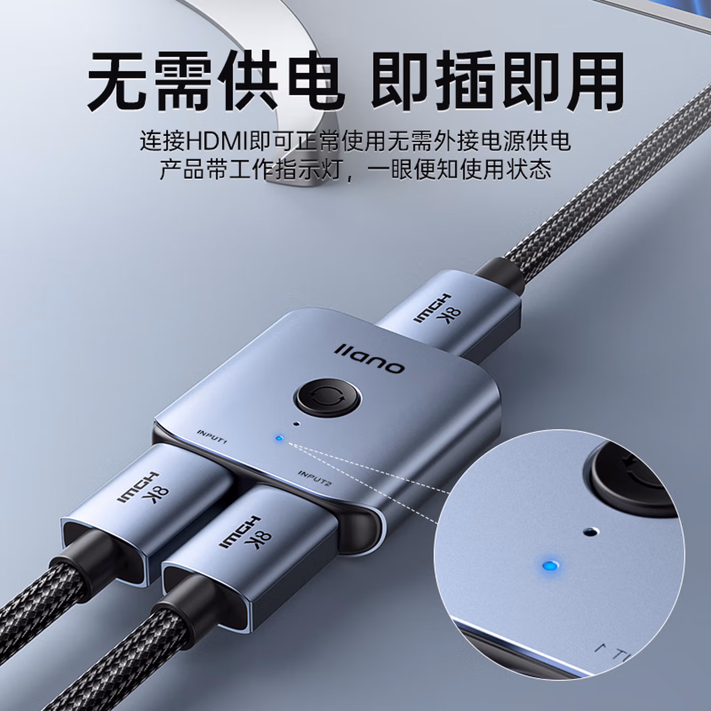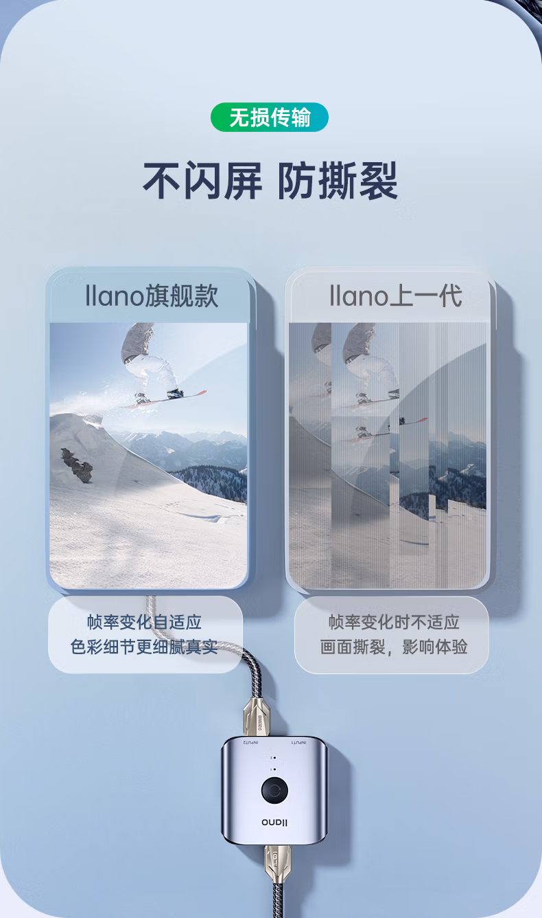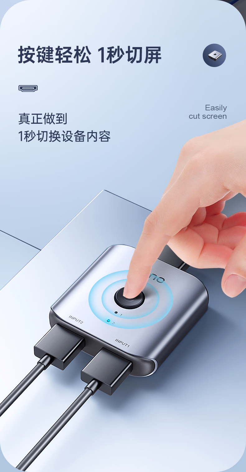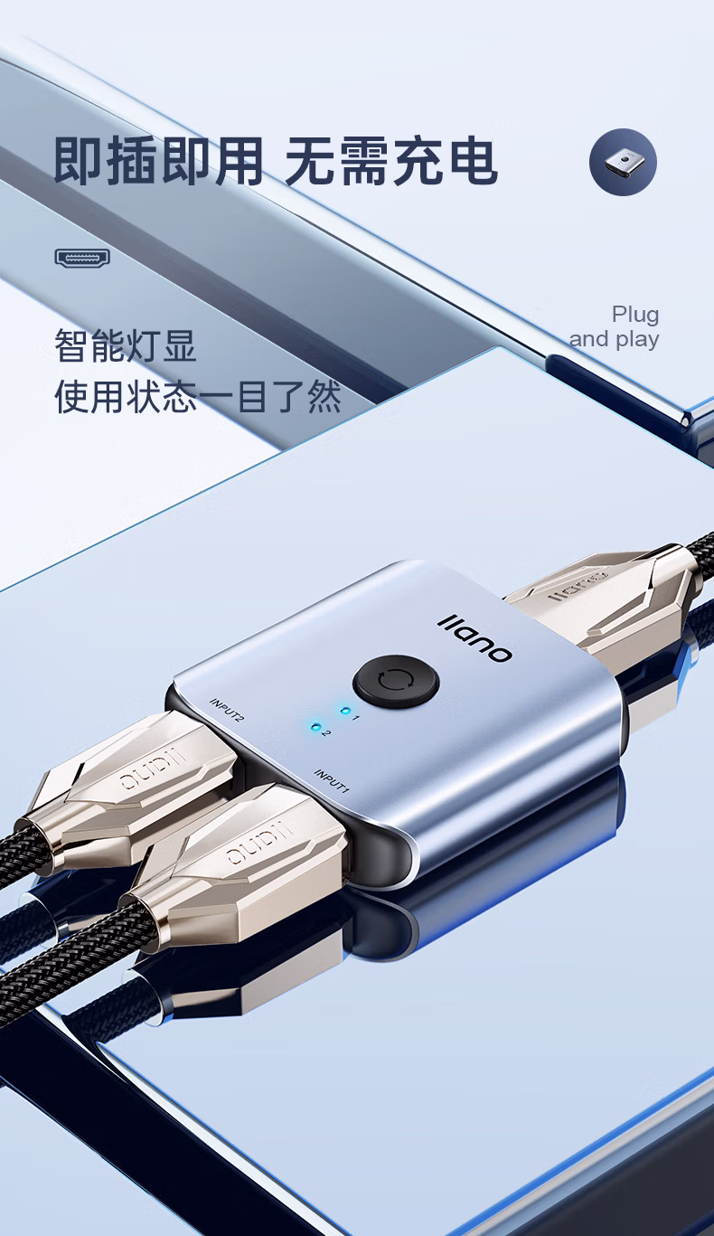 绿巨能HDMI2.0双向切换器二进一出 4K60Hz高清视频分配器一分二笔记本电脑显示器接电视投影分屏器扩展坞