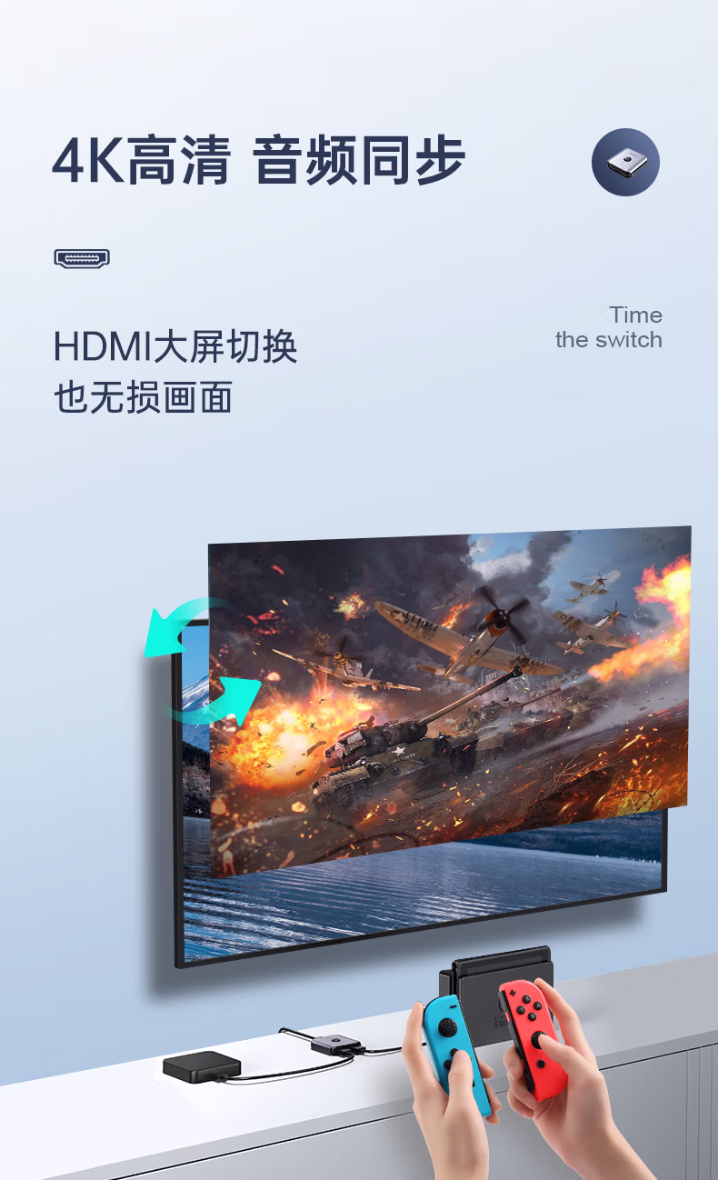> 绿巨能HDMI2.0双向切换器二进一出 4K60Hz高清视频分配器一分二笔记本电脑显示器接电视投影分屏器扩展坞