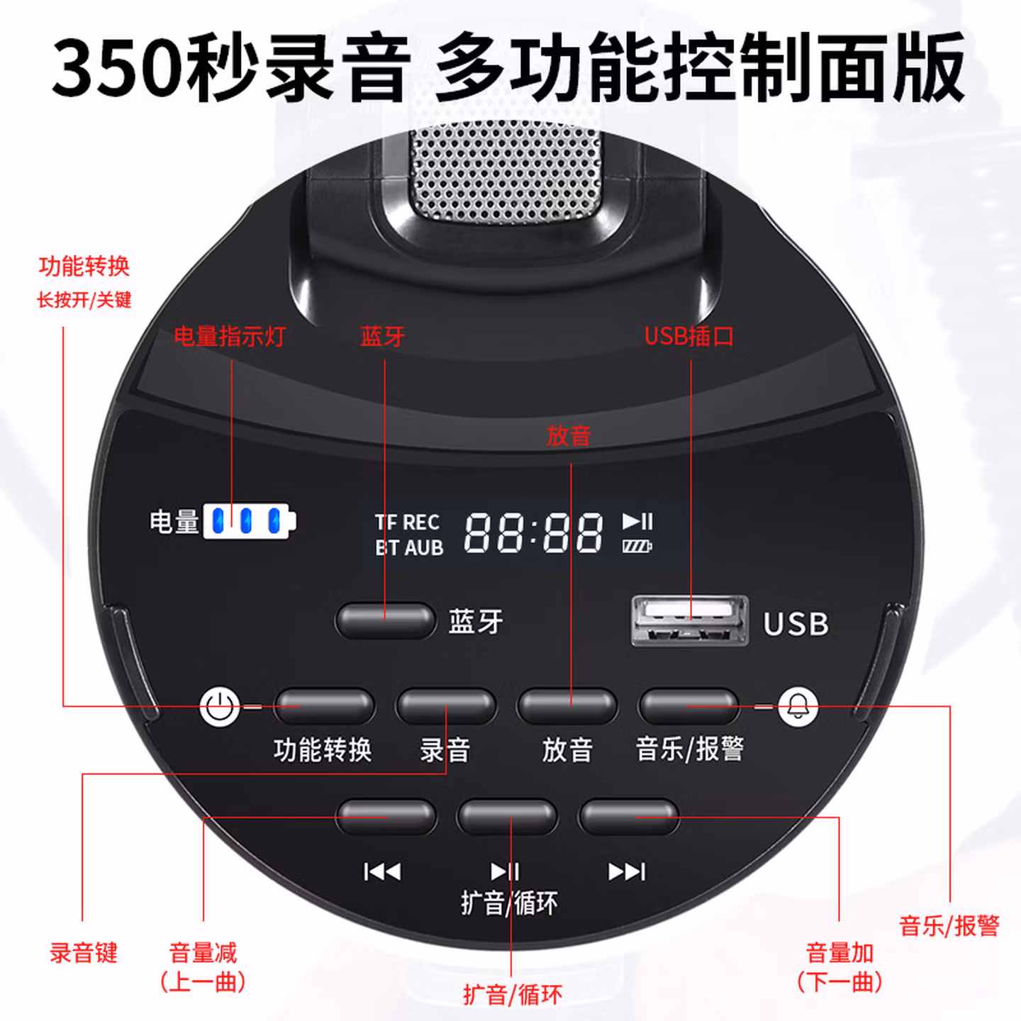 百舸 喇叭手持扩音器80w喊话器可录音350秒锂电池可充电户外车载长续航锂电池黑白色CW182087