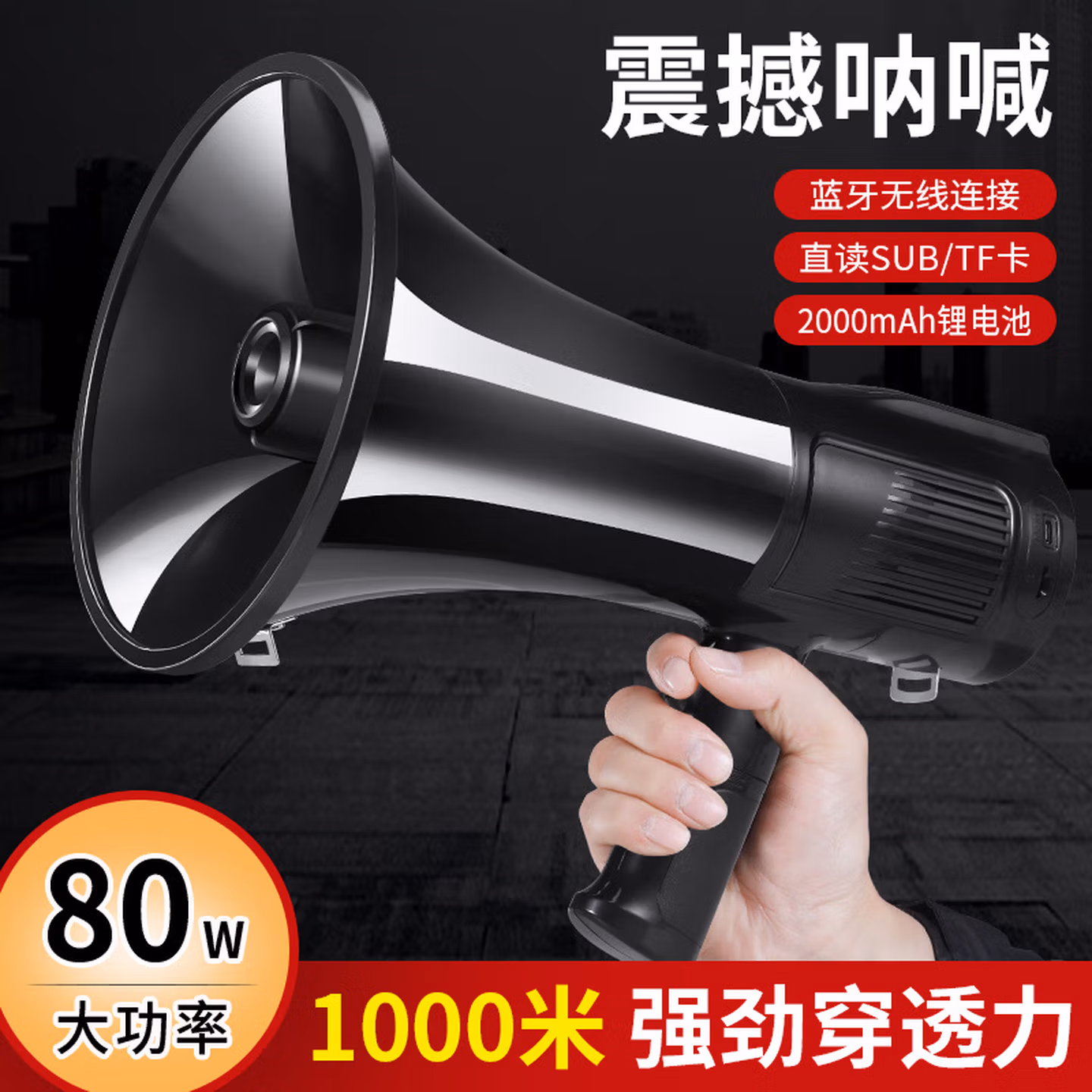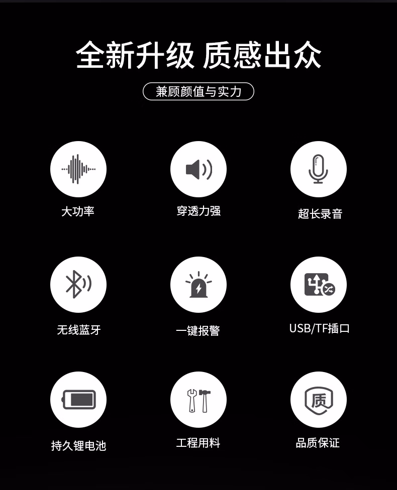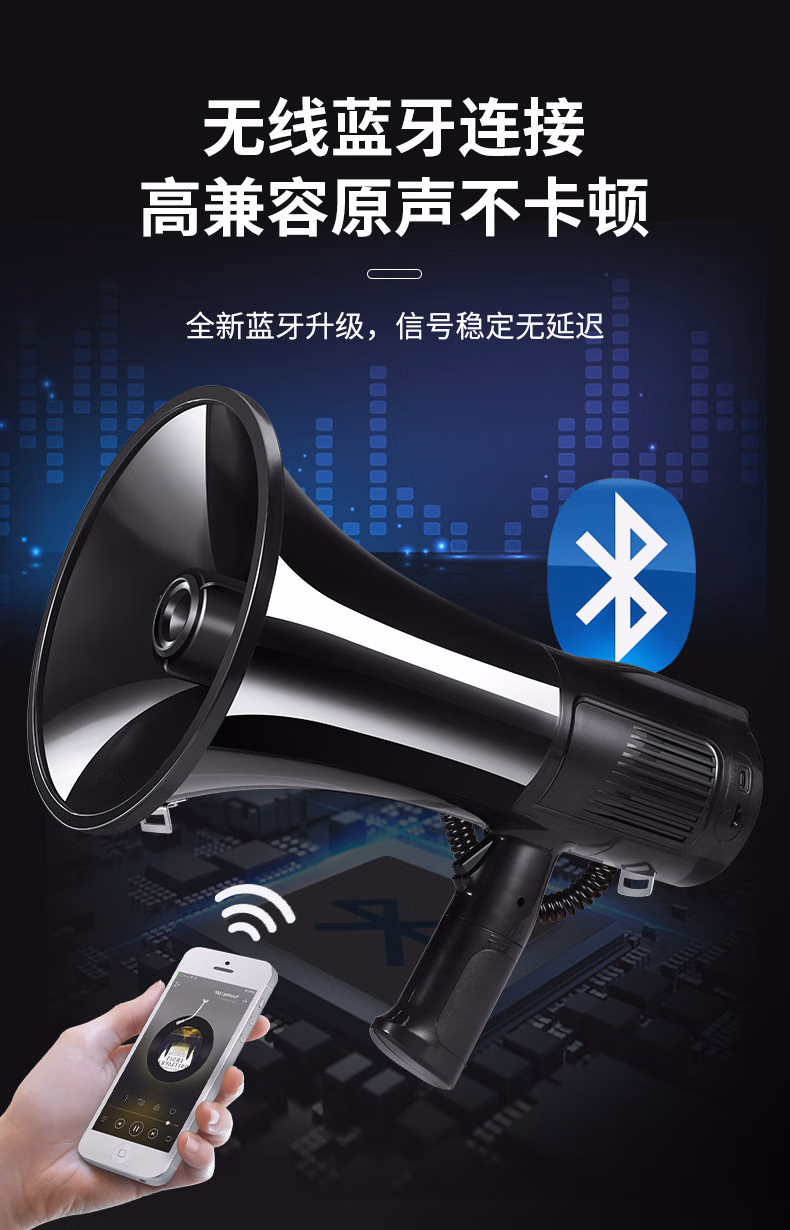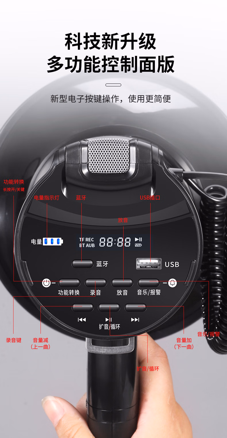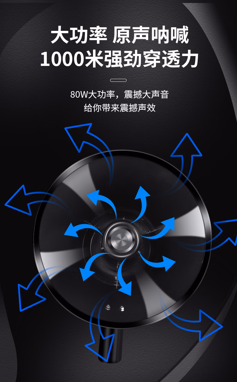 > 百舸 喇叭手持扩音器80w喊话器可录音350秒锂电池可充电户外车载长续航锂电池黑白色CW182087