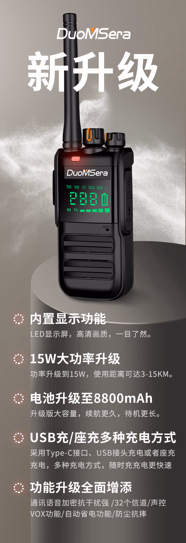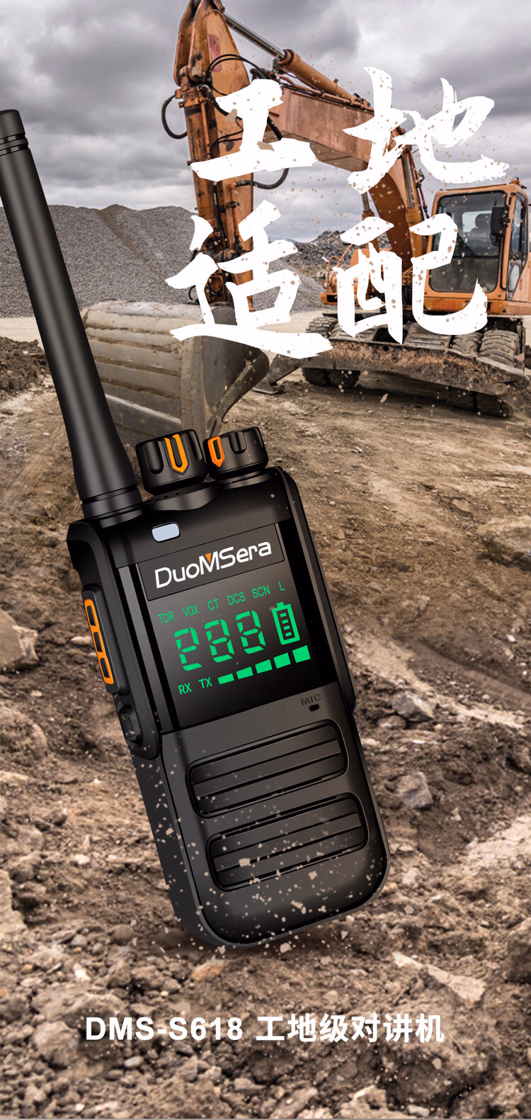 > 多美声大功率對講機 无线户外手持防水民用手台工地自驾游 对讲机 DMS-S618内显版(1-10公里