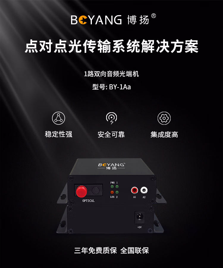 > 博扬(BOYANG)1路双向音频光端机 光纤音频延长器 语音光端机 莲花RCA接口 FC单纤20km BY-1Aa