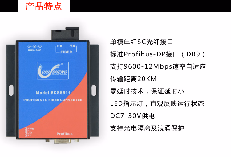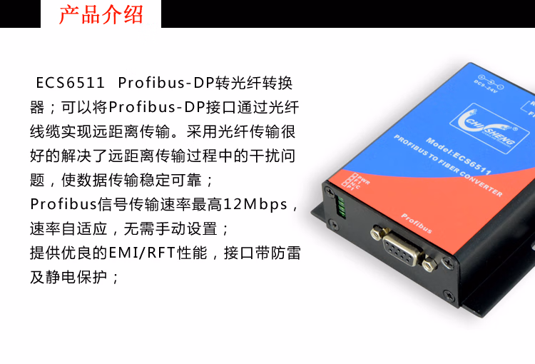 > ECS6511工业级Profibus-DP转光纤收发器 dp光端机 单模单纤SC