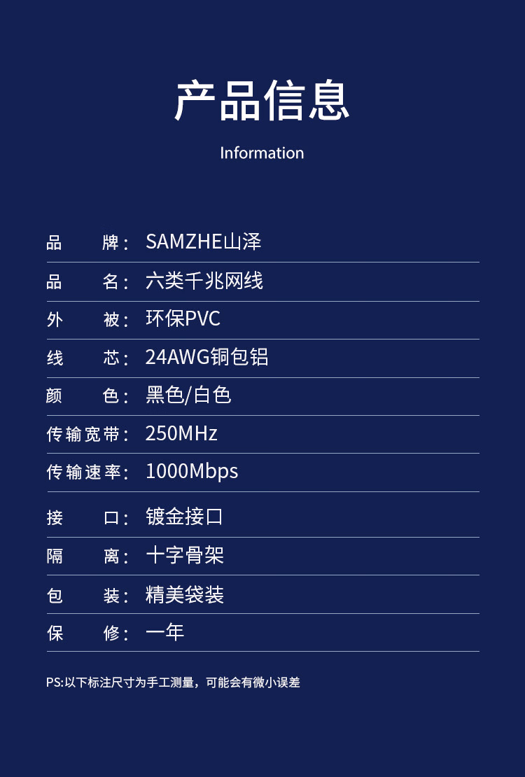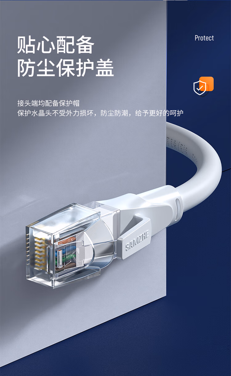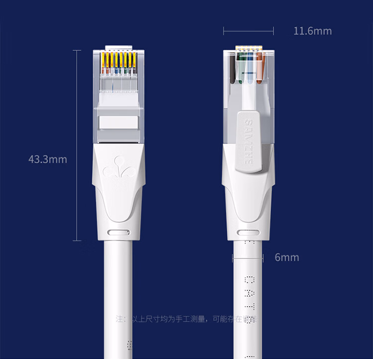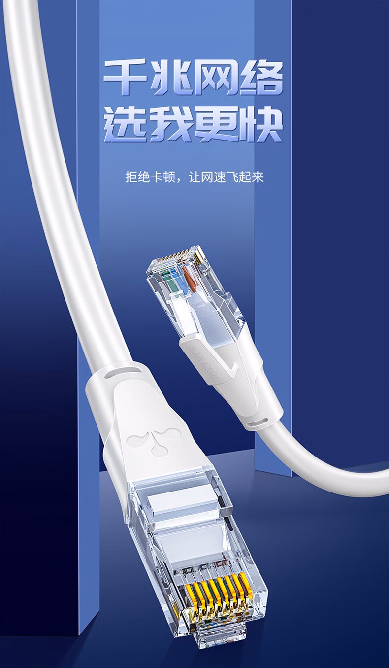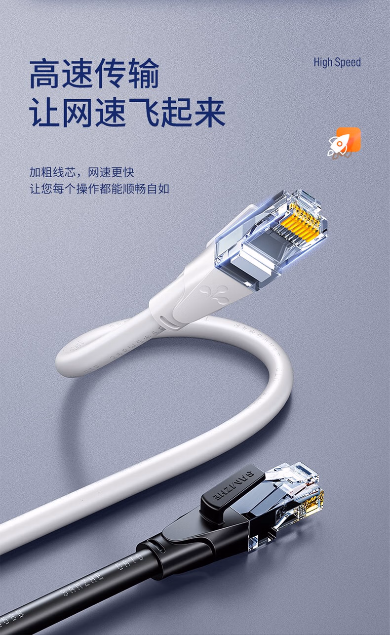 > 山泽(SAMZHE)六类网线 CAT6类千兆8芯双绞 工程家用宽带监控电脑网络成品跳线白色3米 BWD6030