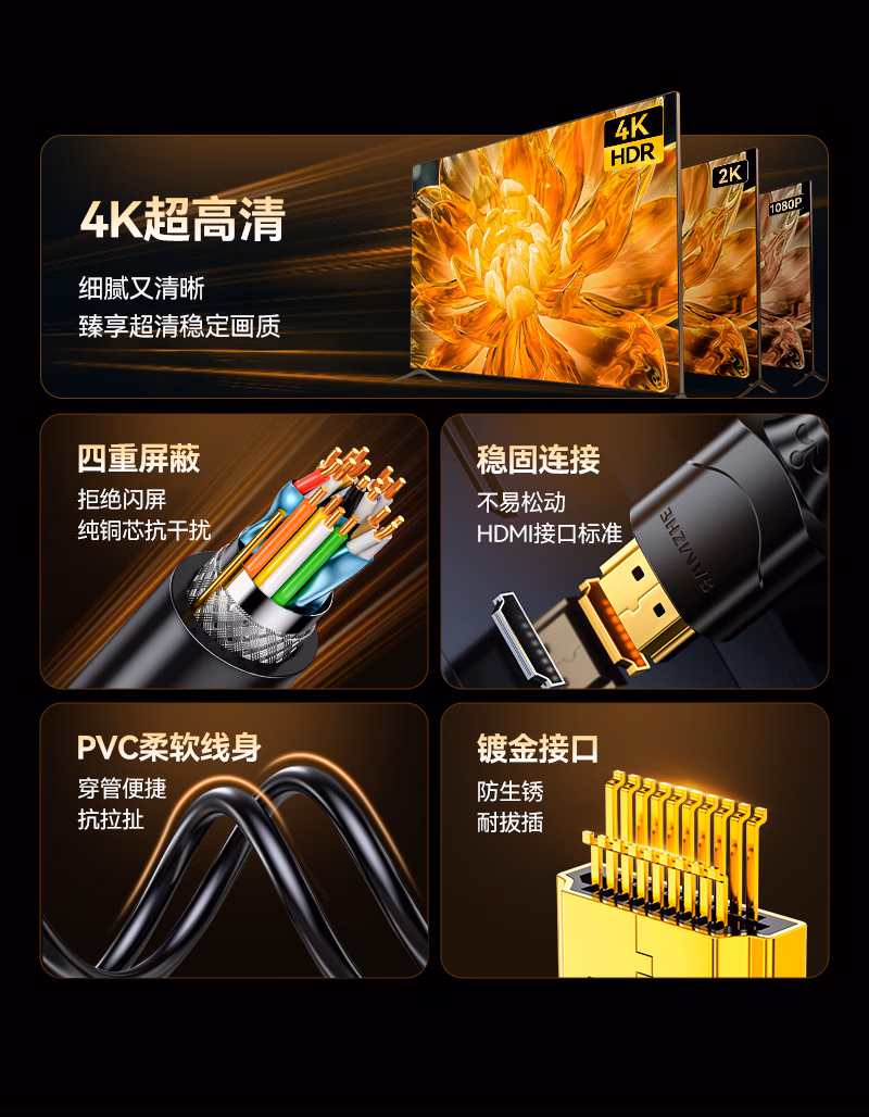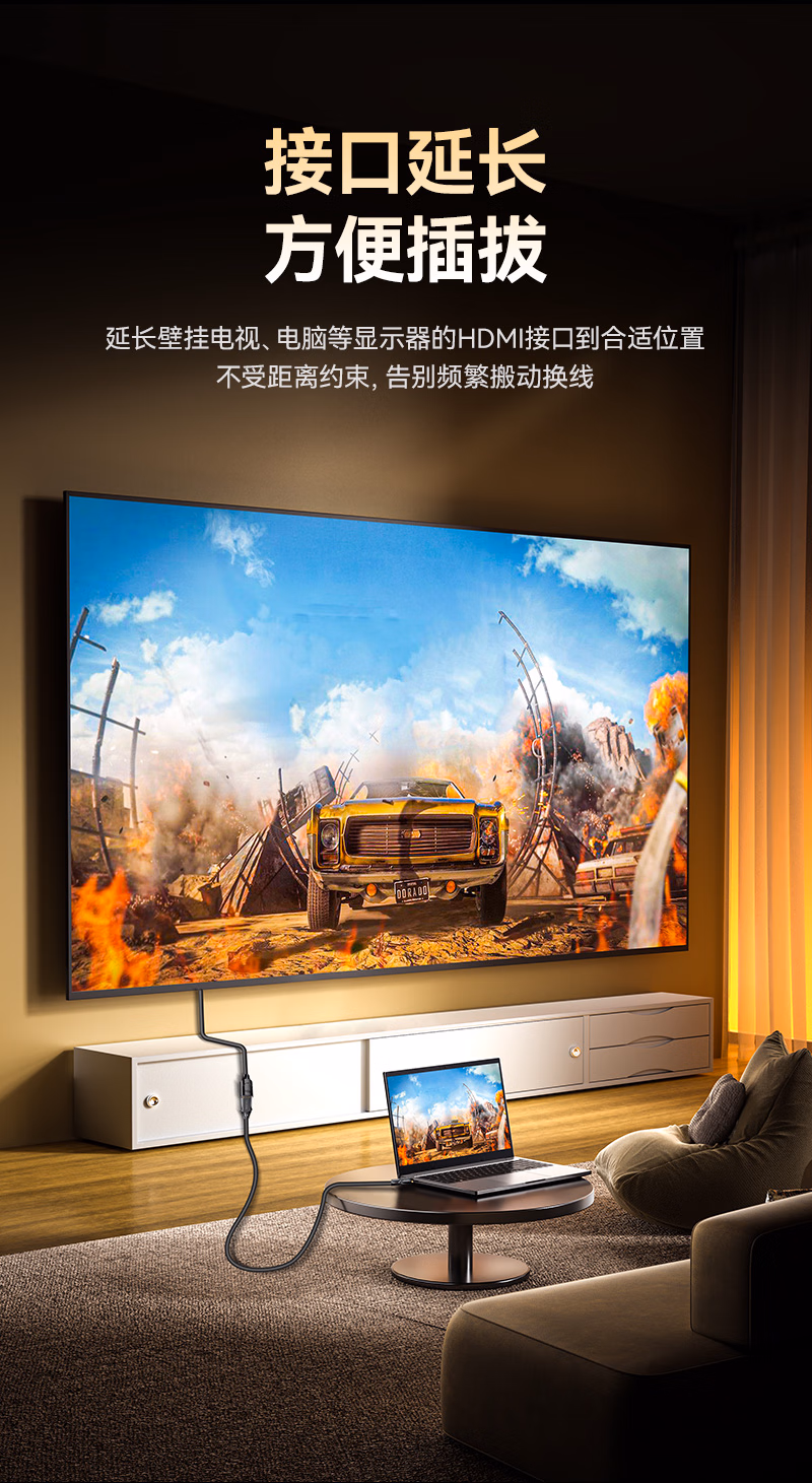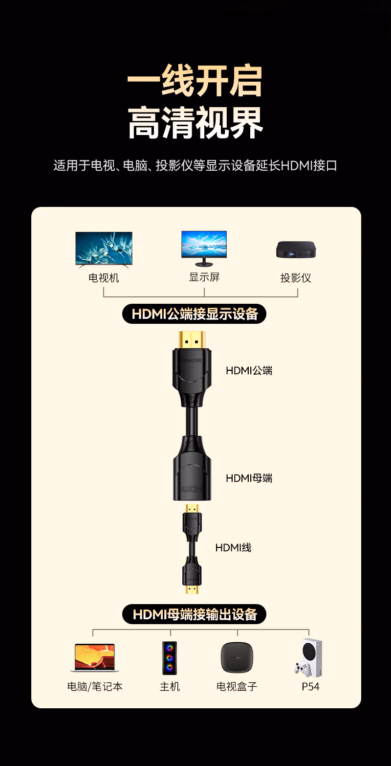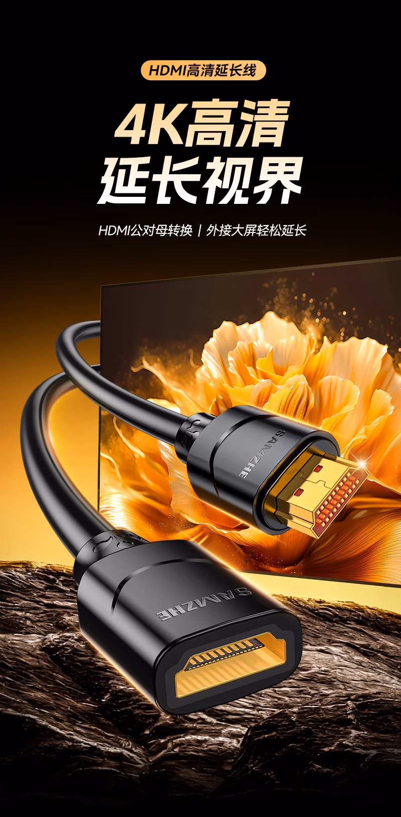 > 山泽 HDMI线延长线 4K高清3D视频线 公对母转换线 电脑接电视投影仪显示器连接线 0.5米黑 05MN9