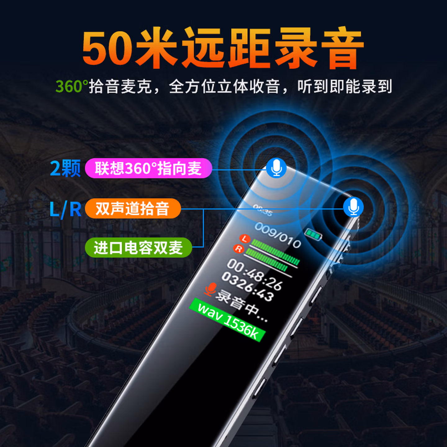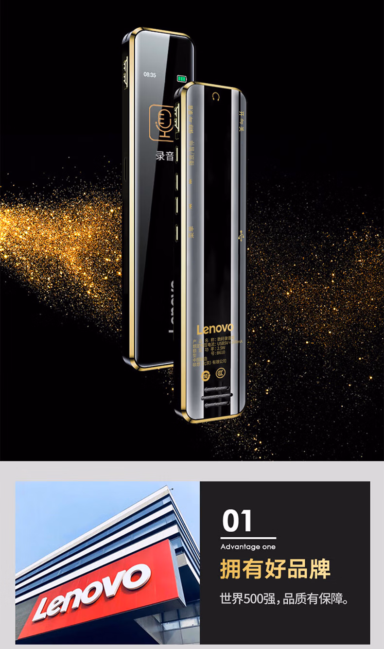 > 联想(Lenovo)录音笔B610 16G专业高清远距声控降噪 超长待机录音器学生学习商务采访会议培训