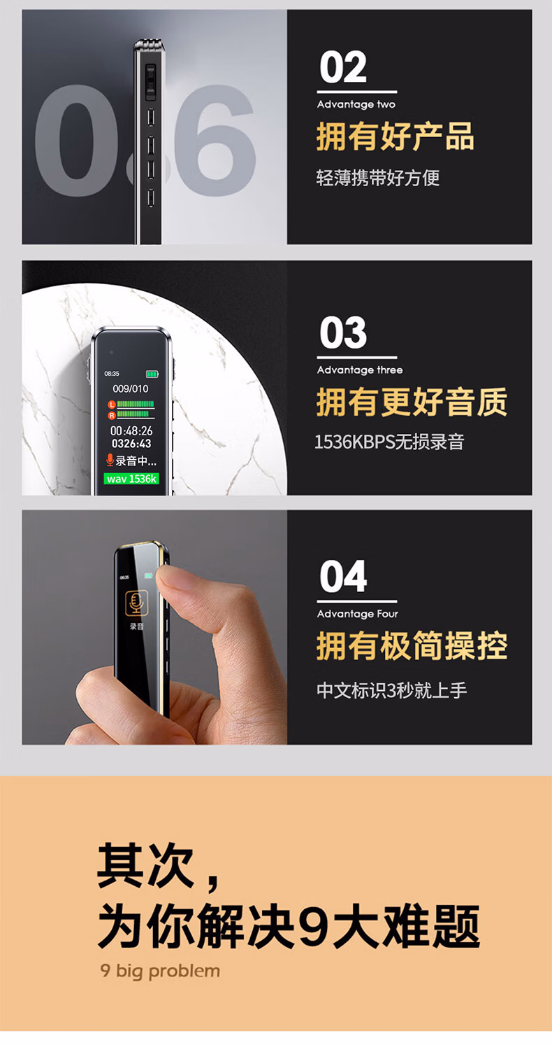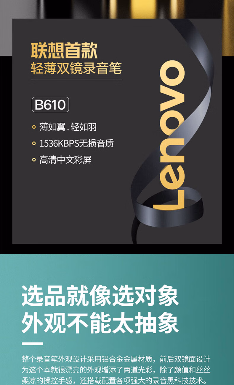 > 联想(Lenovo)录音笔B610 64G专业高清远距声控降噪 超长待机录音器学生学习商务采访会议培训
