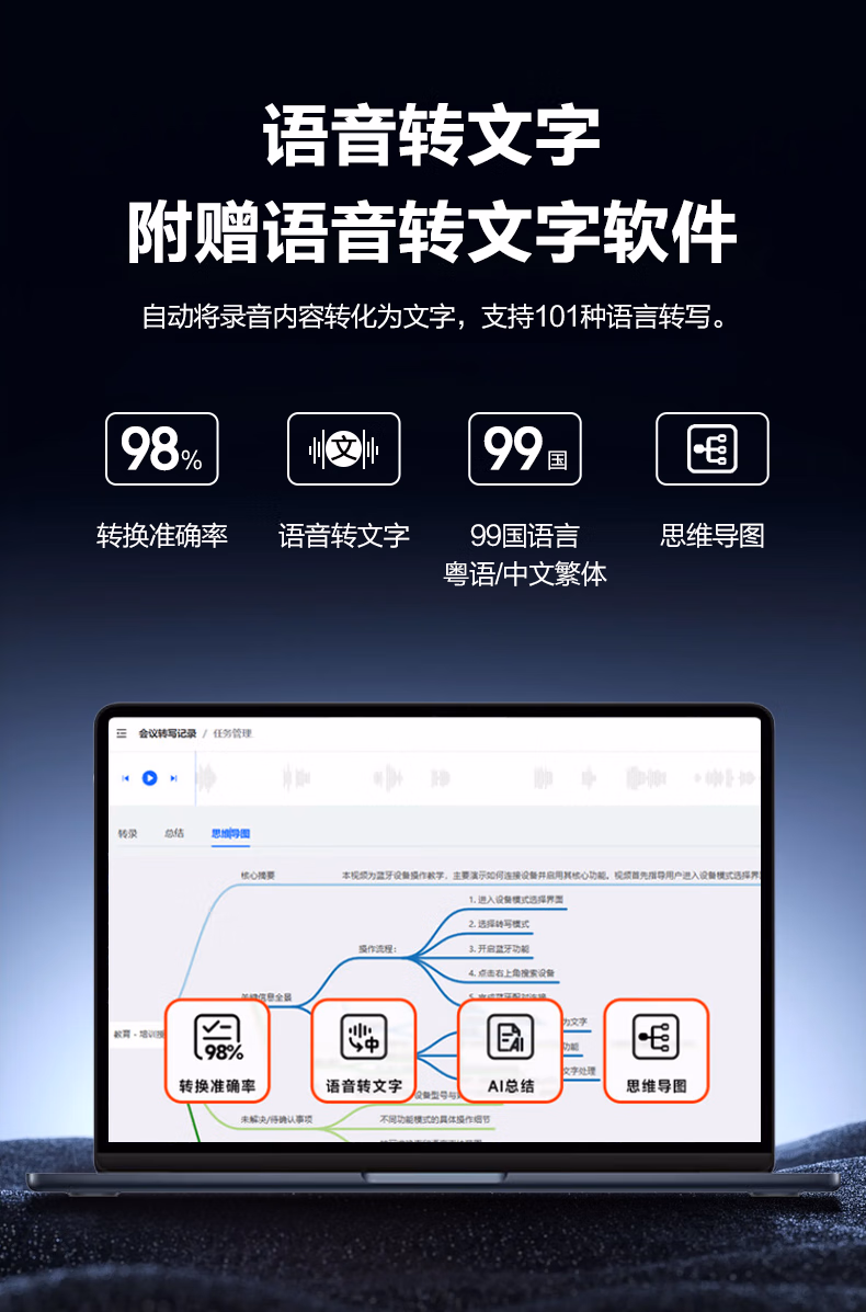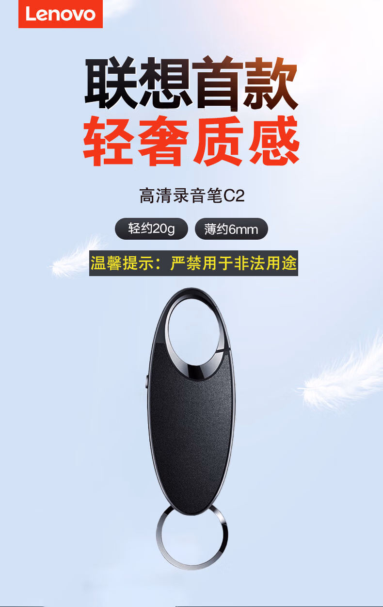 > 联想(Lenovo)录音笔C2 16G 智能录音器 一推录音 专业高清降噪 学习培训商务会议专用