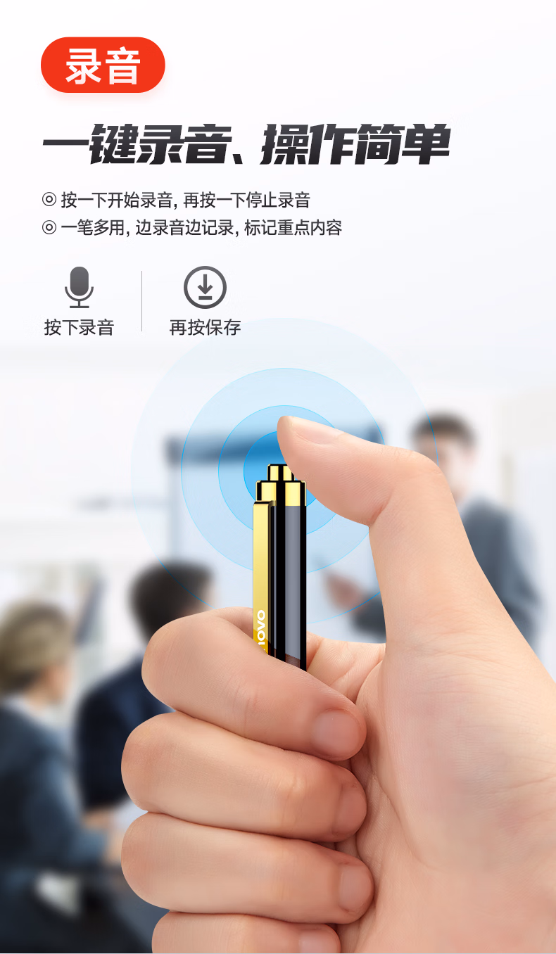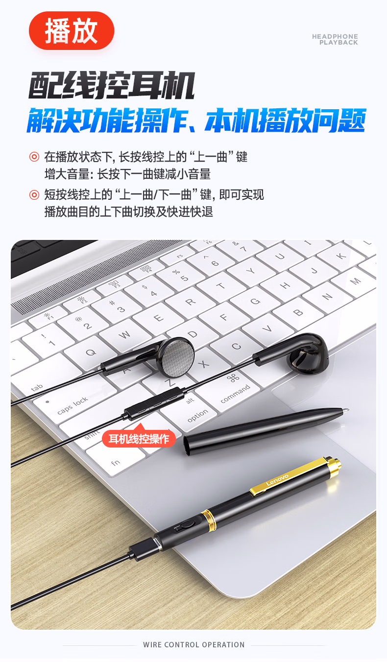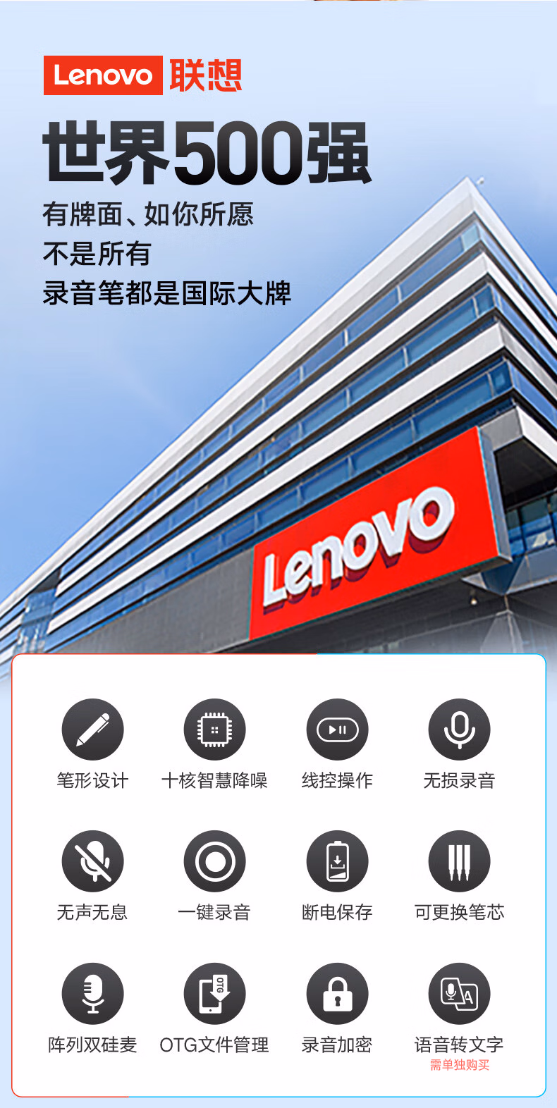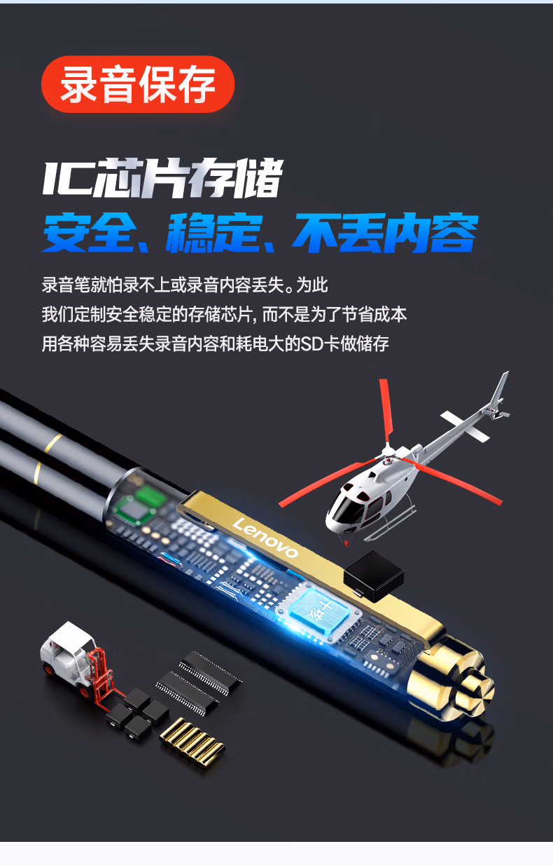 > 联想(Lenovo)录音笔B628 32G智能笔形高清远距降噪便携录音器 学习培训商务会议采访