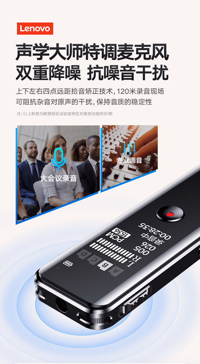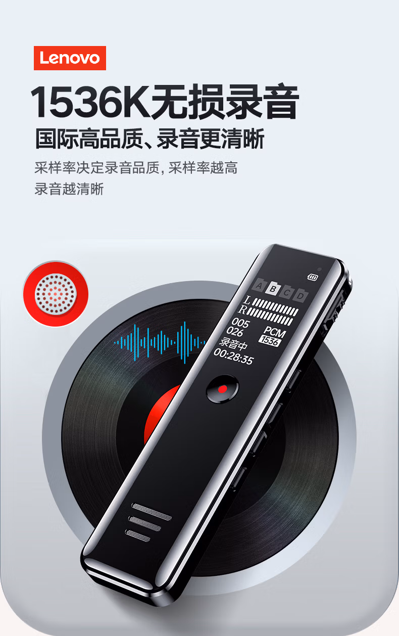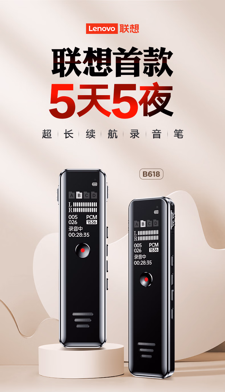 > 联想(Lenovo)录音笔B618 16G专业高清降噪远距声控录音器超长待机学生学习商务采访会议培训