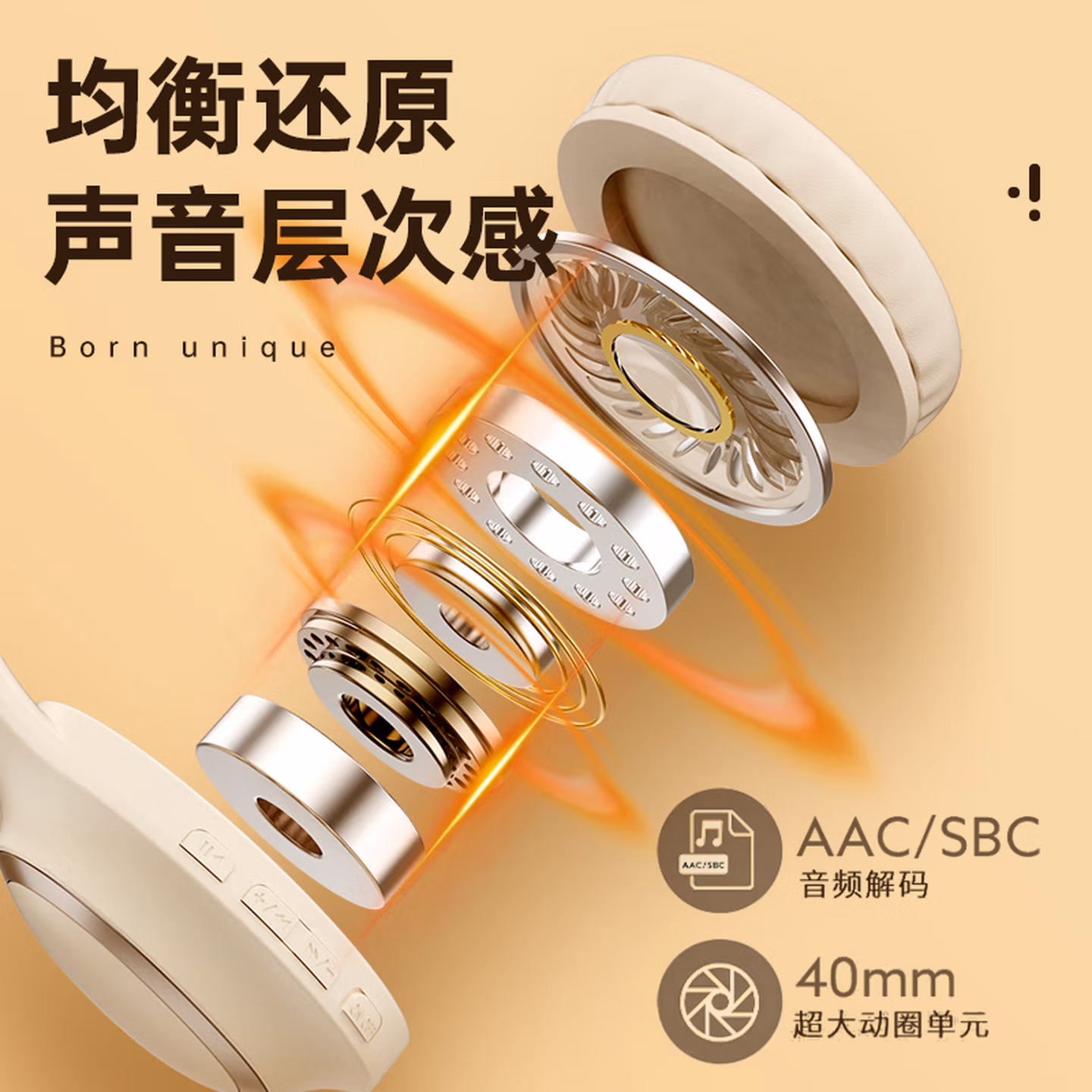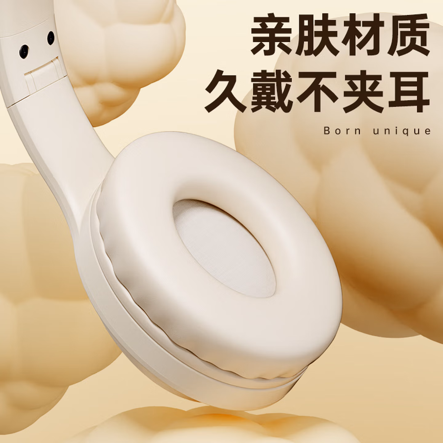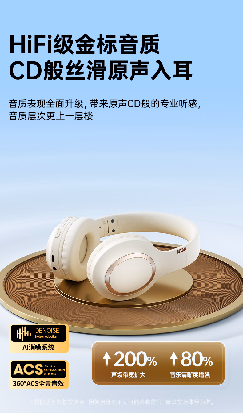 > 宏碁(acer)【买贵双倍赔】OHR300头戴式蓝牙耳机无线降噪耳麦电脑游戏运动音乐耳机超长待机米白