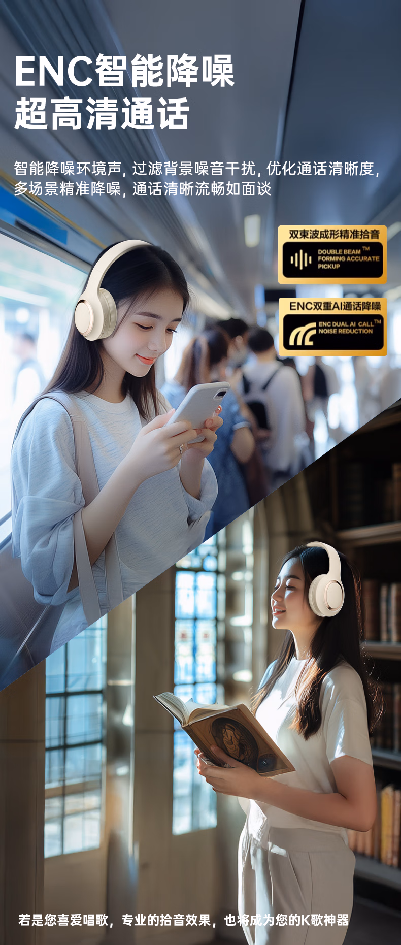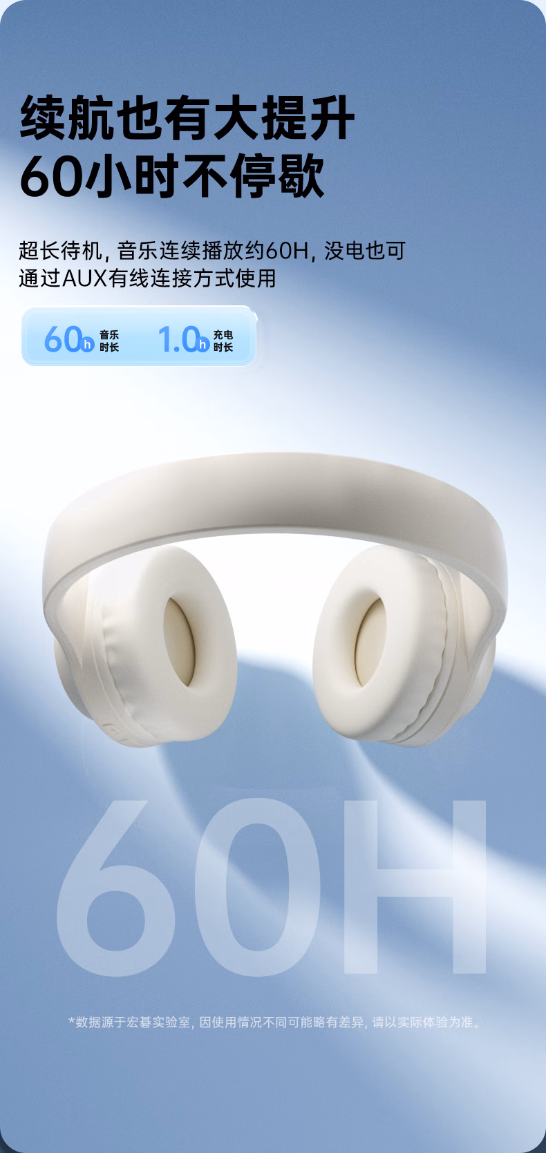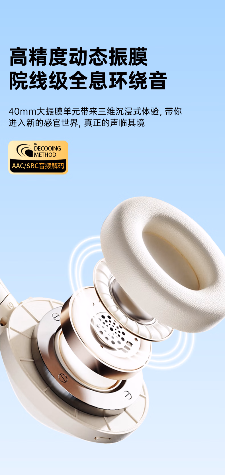 > 宏碁(acer)【买贵双倍赔】OHR300头戴式蓝牙耳机无线降噪耳麦电脑游戏运动音乐耳机超长待机米白