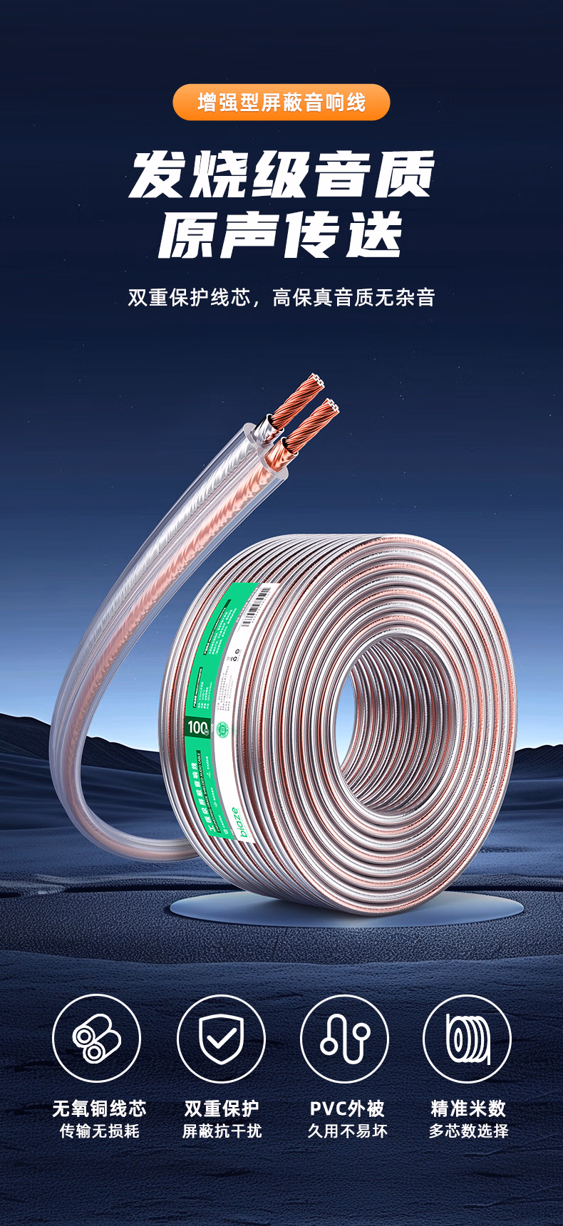 发烧级纯铜音响线100芯[100米]