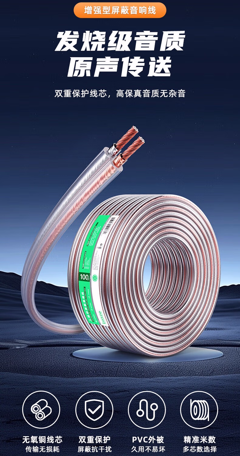 > 毕亚兹发烧级纯铜音响线 2*300芯 增强型屏蔽抗干扰 功放音箱音频喇叭金银线连接线 100米 Y95 Y95-2*300芯-100m