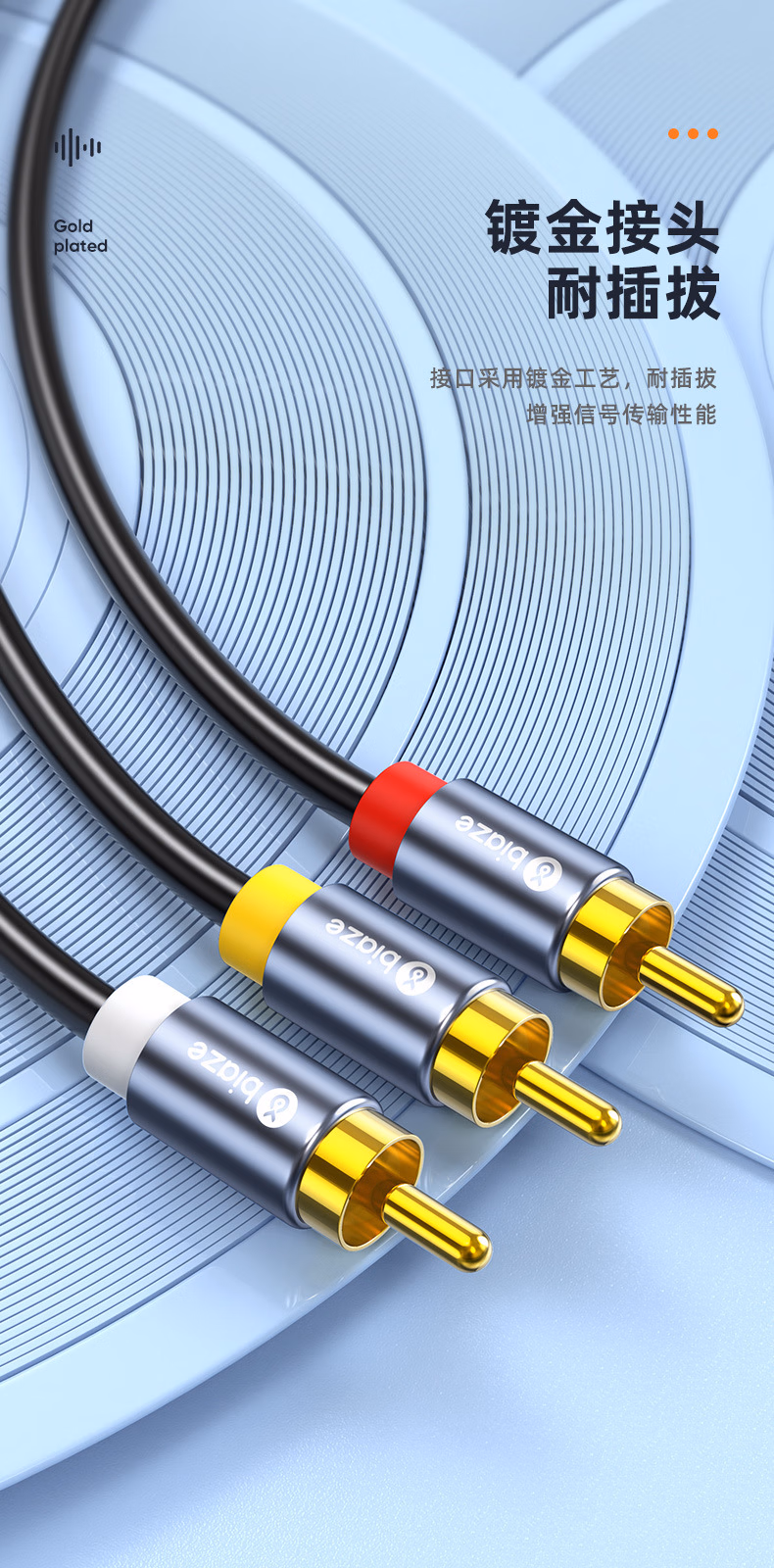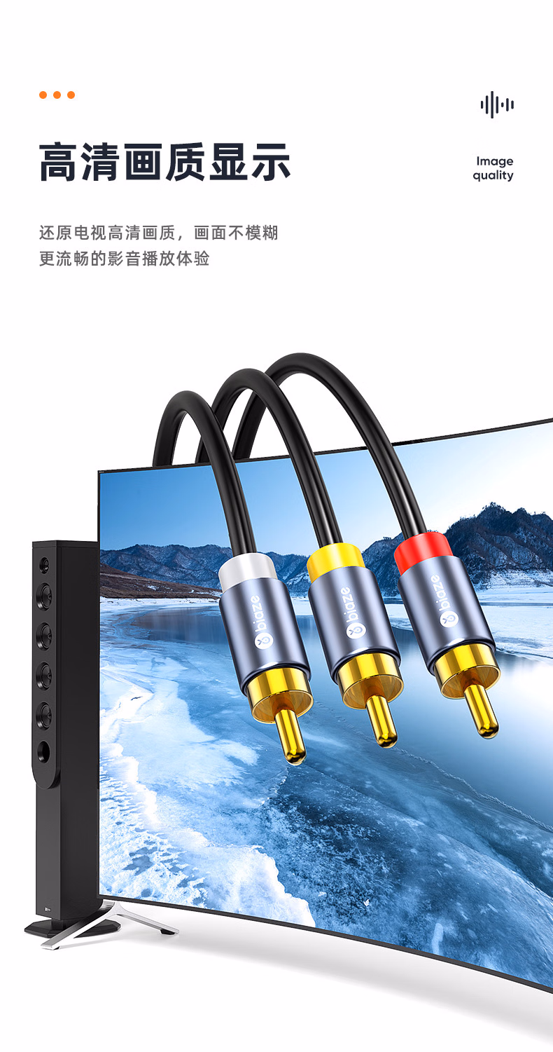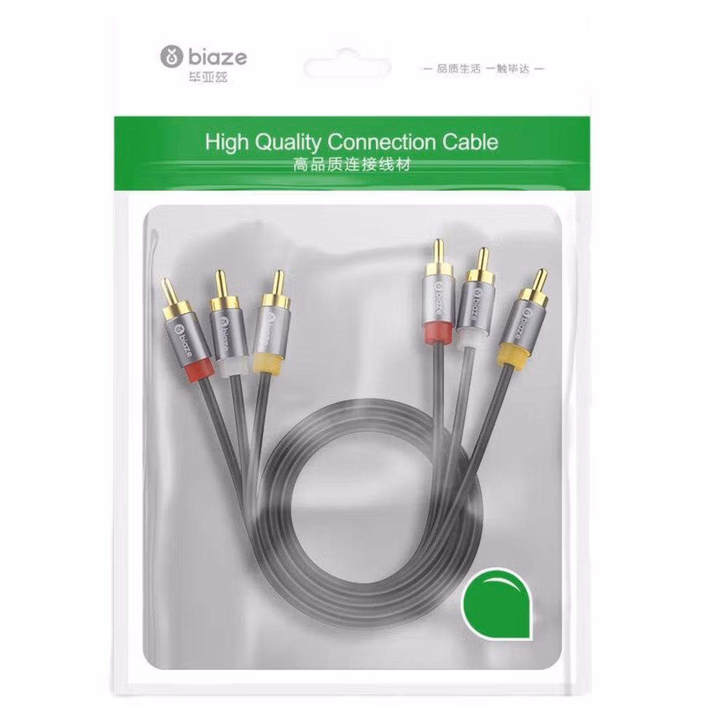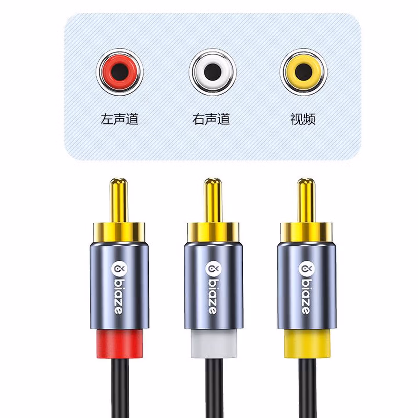 > 毕亚兹 三对三莲花头AV线 3RCA音视频连接线 红白黄AV转接线Y19 3米