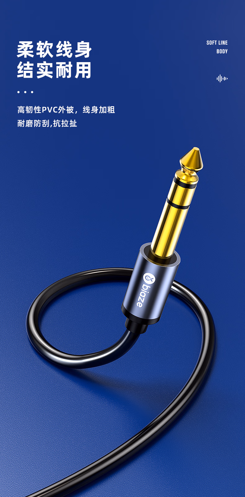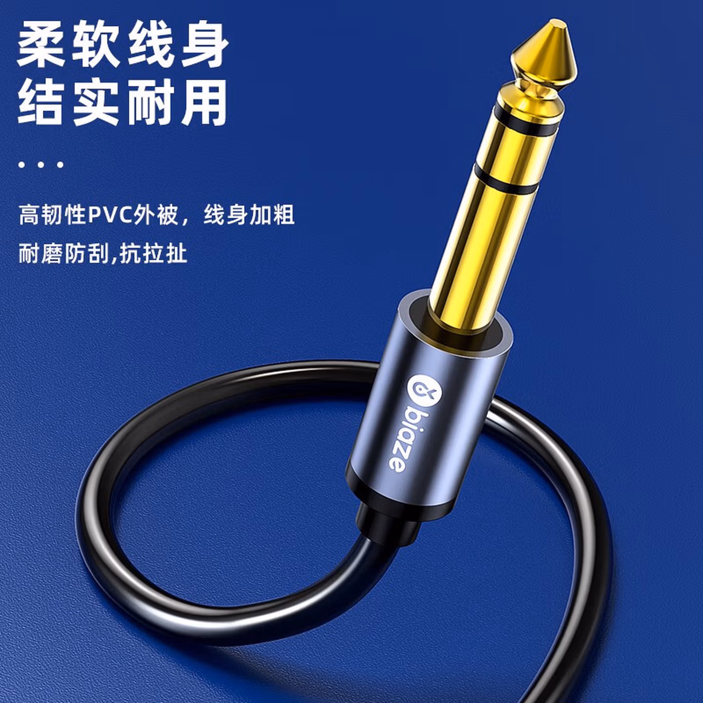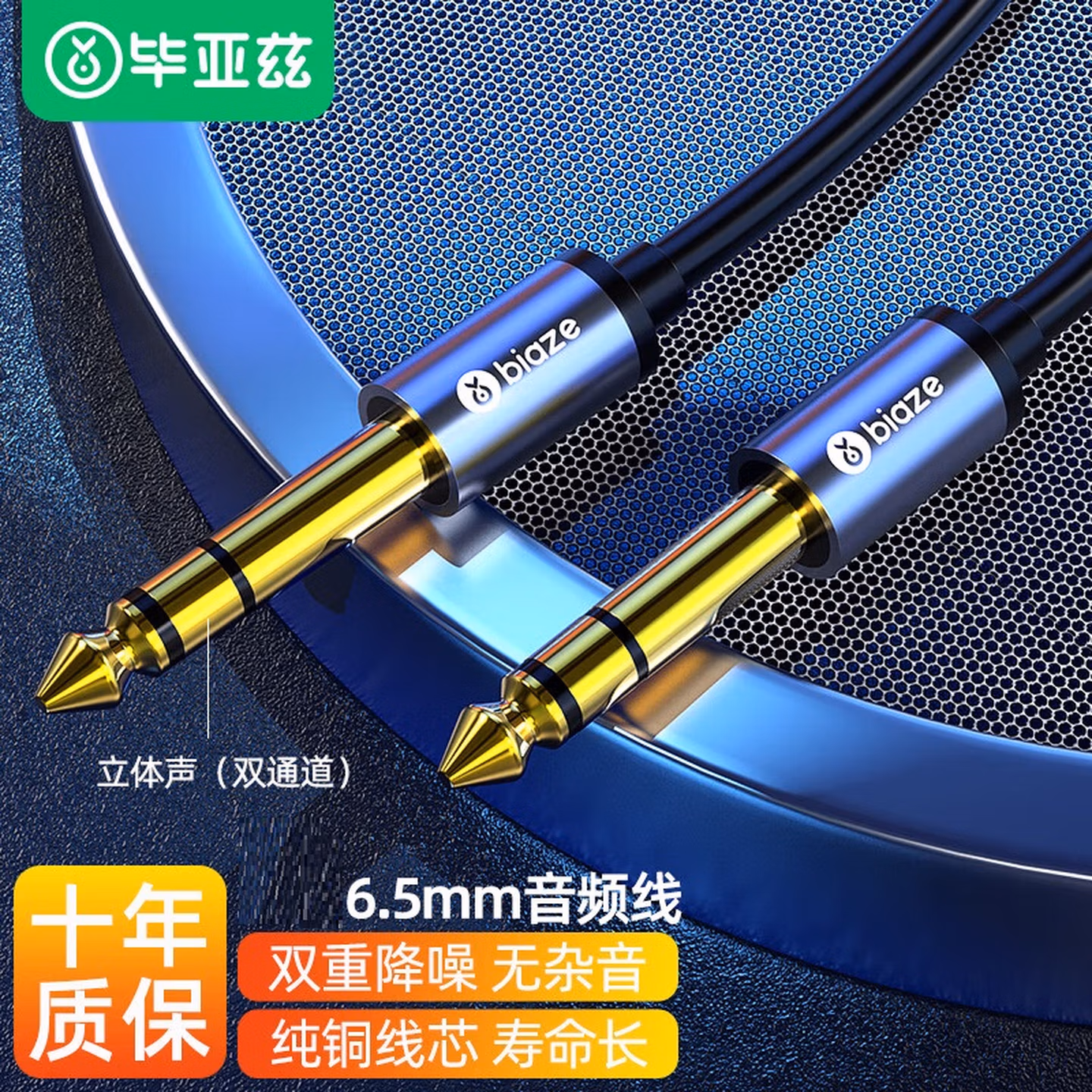 > 毕亚兹6.5mm音频线 6.5大三芯公对公连接线 6.35音响对录线功放吉他调音台转接线 6.35mm对录线 Y17 6.5mm音频线(立体声大三芯) 10米