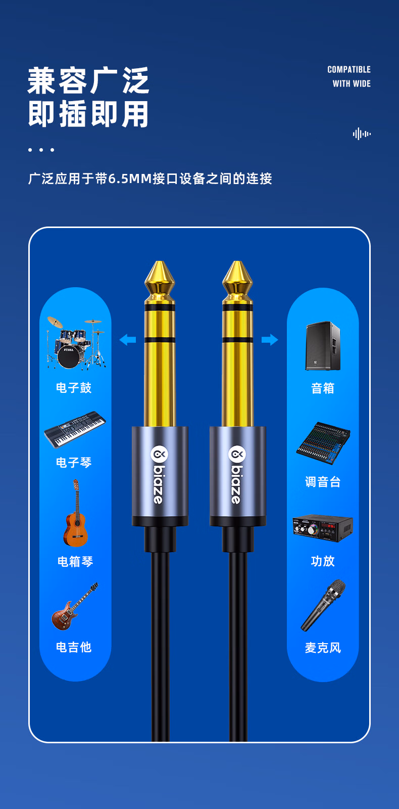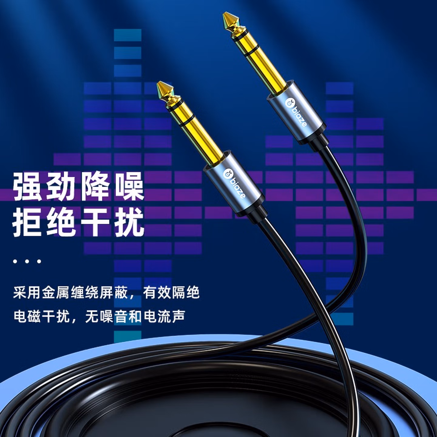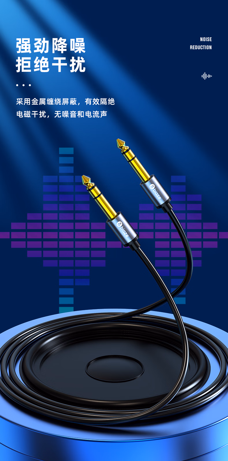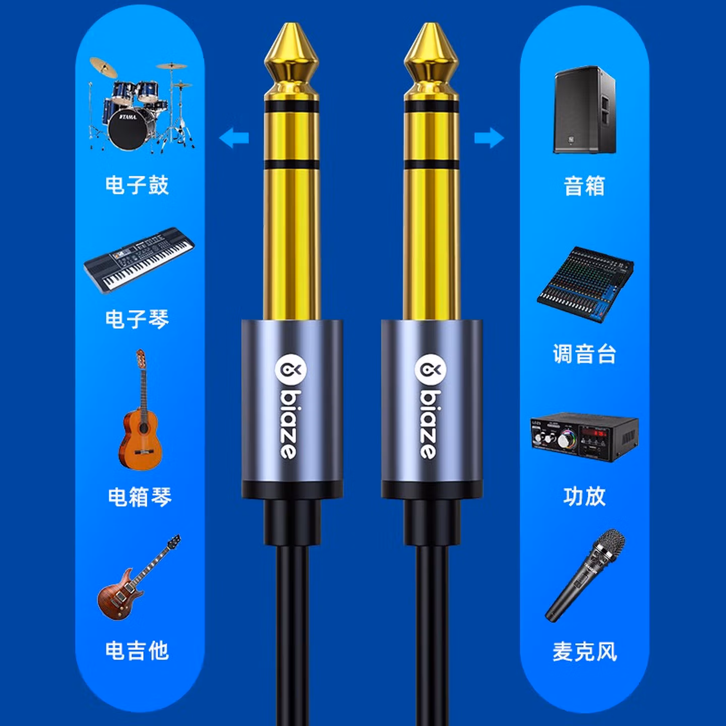 > 毕亚兹6.5mm音频线 6.5大三芯公对公连接线 6.35音响对录线功放吉他调音台转接线 6.35mm对录线 Y17 6.5mm音频线(立体声大三芯) 10米