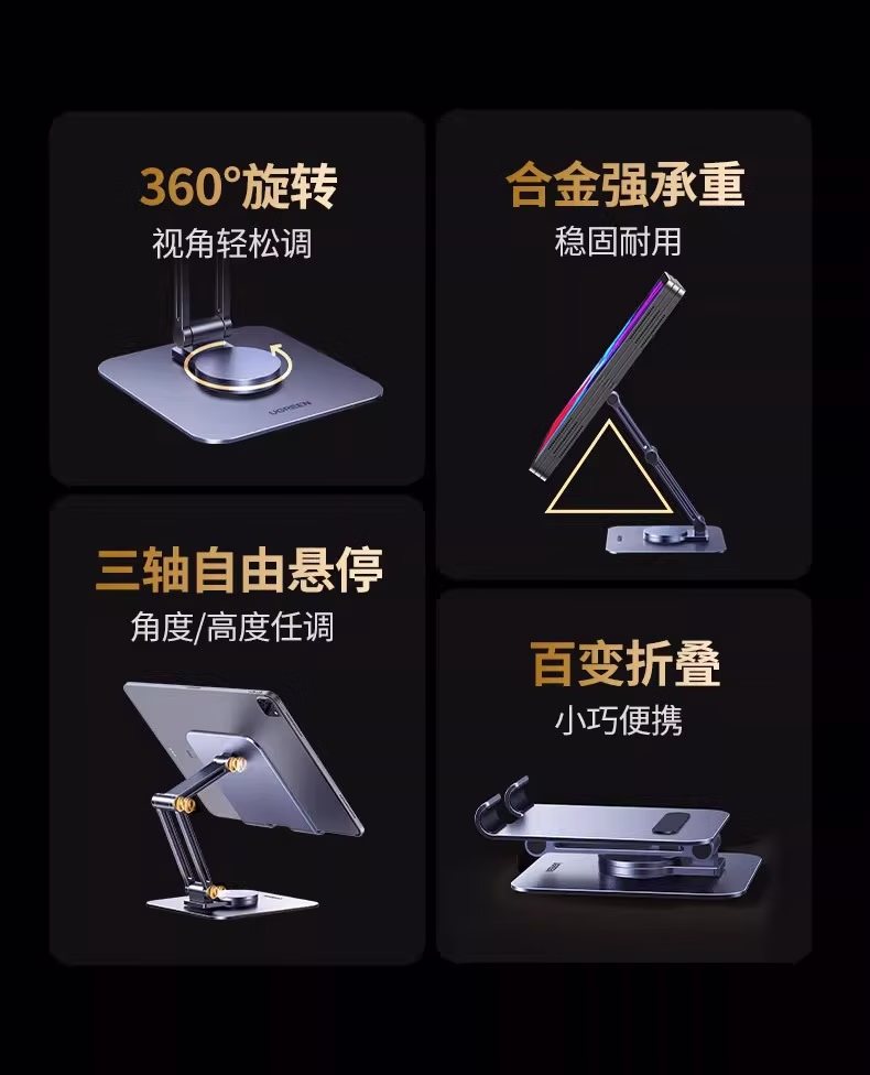 > 绿联手机支架桌面 平板支架ipad桌面360°旋转折叠支架直播追剧抖音办公网课床头懒人支架 【便携经典款】13英寸手机/平板通用