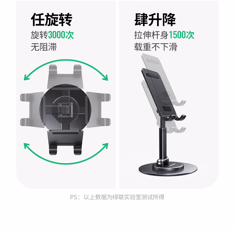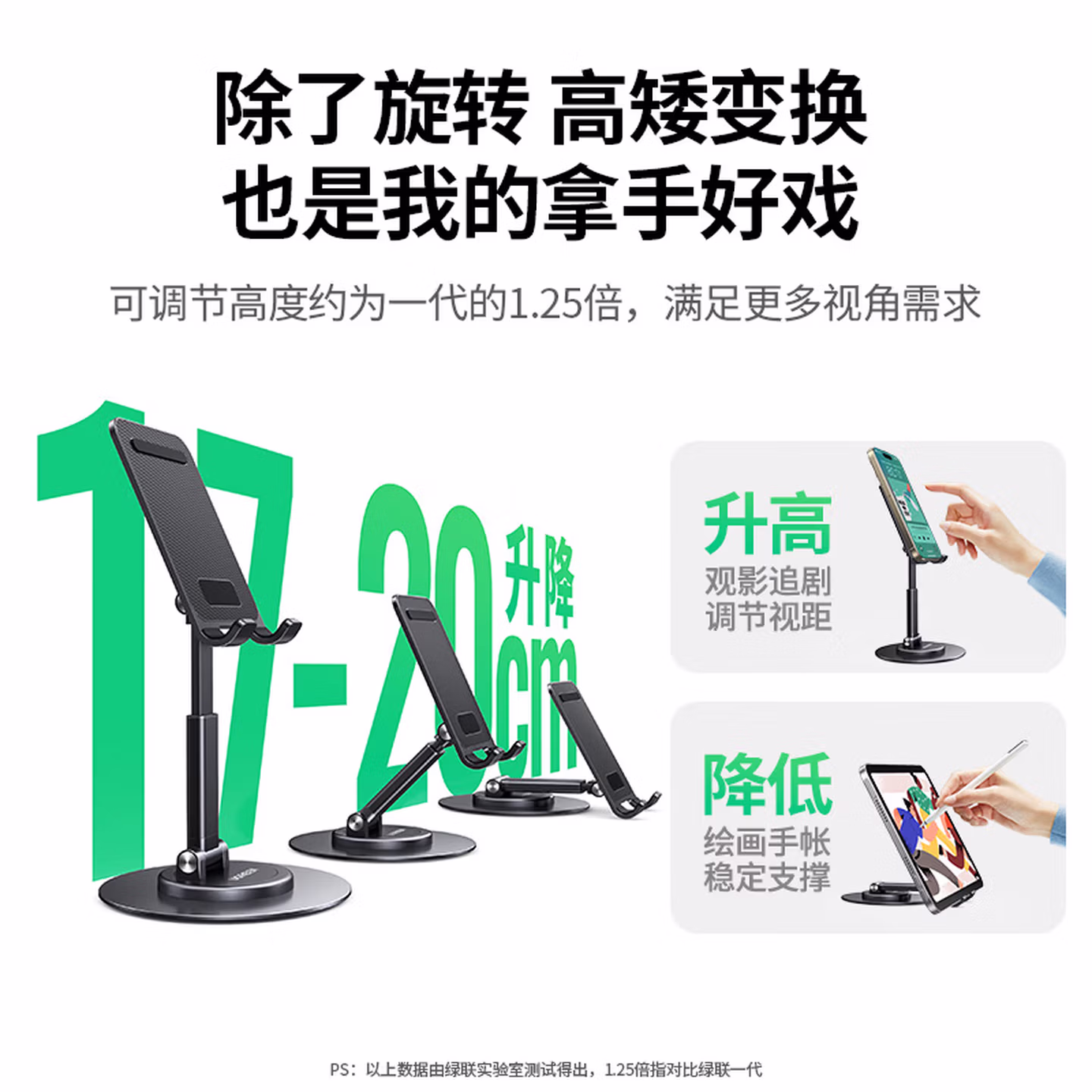 > 绿联(UGREEN)旋转手机支架桌面平板手机架支架适用ipadPro支撑架直播金属合金通用折叠升降360调节多功能懒人20 【旗舰】自由升降-折叠9.7英寸手机/平板通用