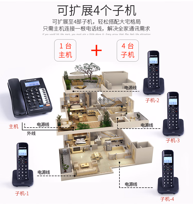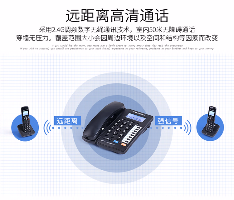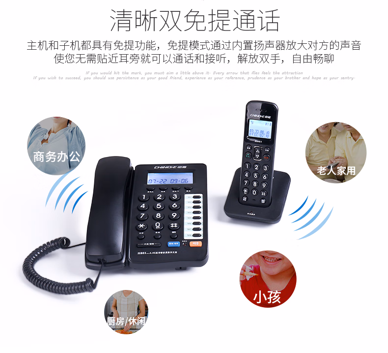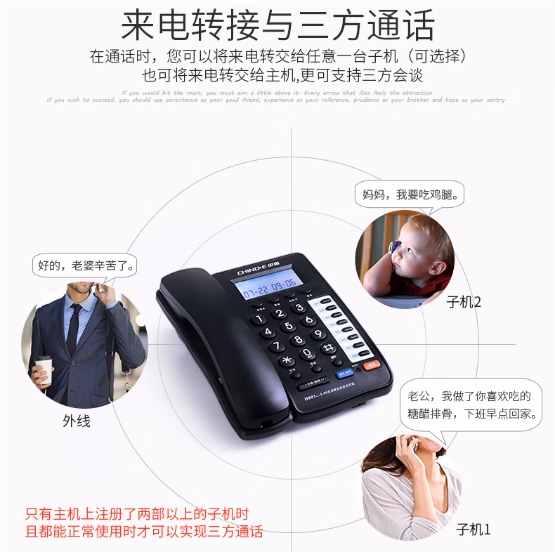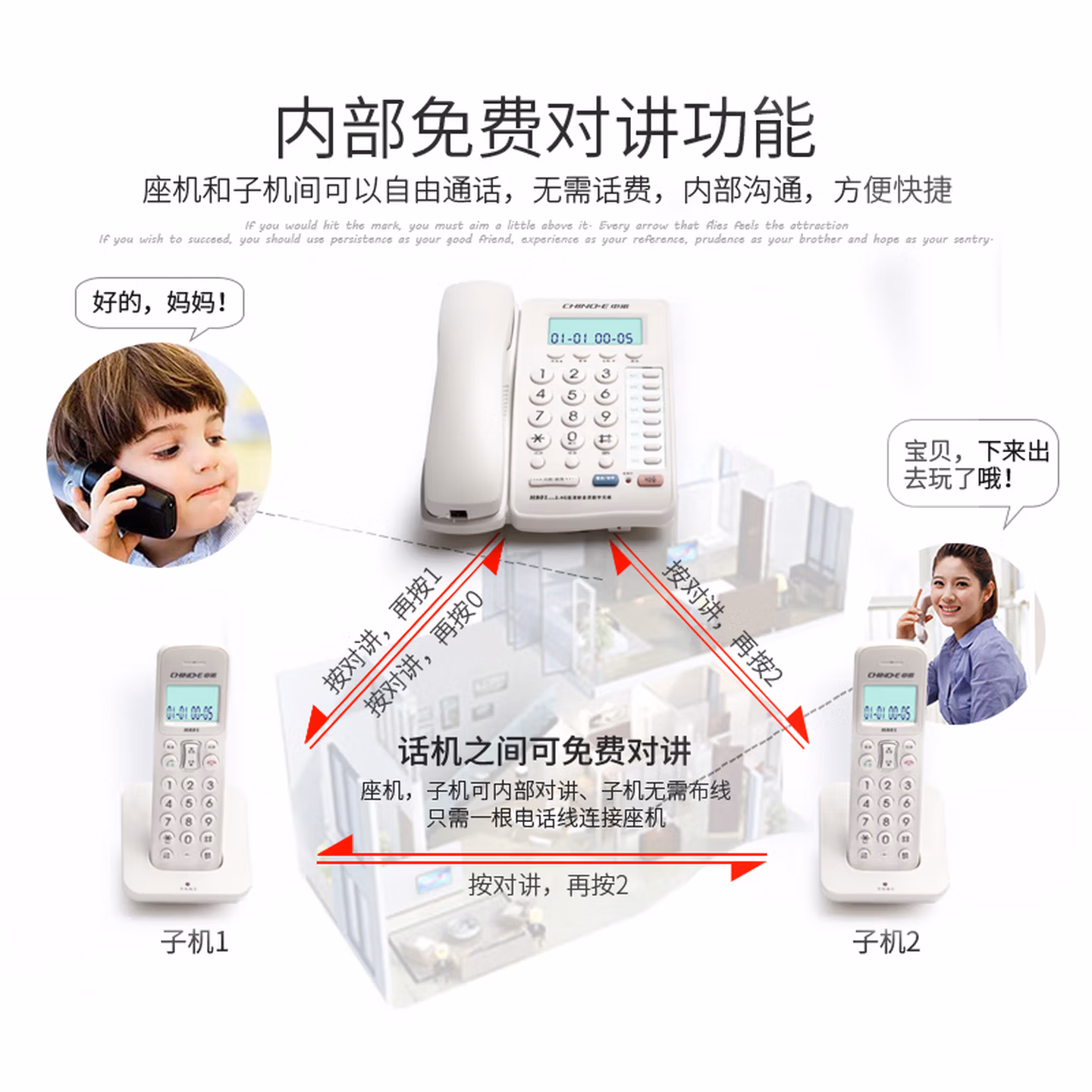 > 中诺电话机座机数字无绳电话一托一无线子母机电话办公家用内部免费对讲H801 白色一拖一